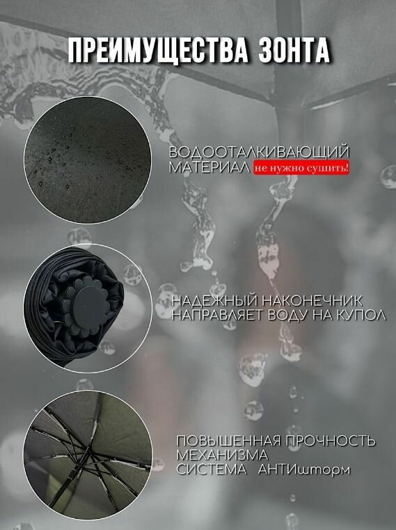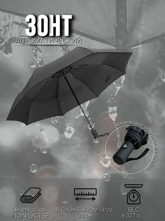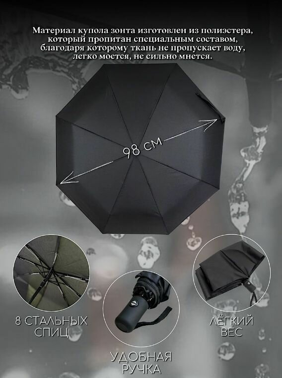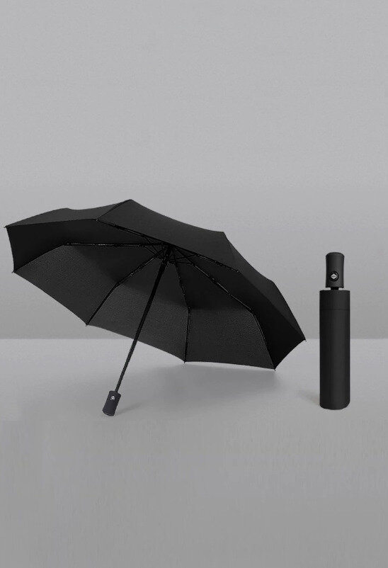 Зонт складной черный автомат. Антиветер. 8 спиц интересное: