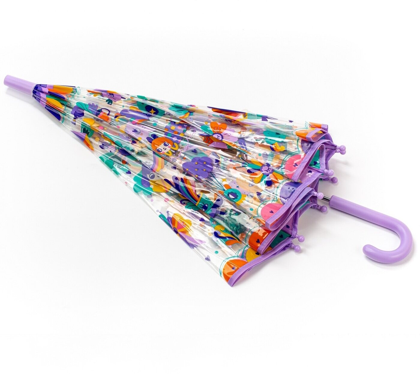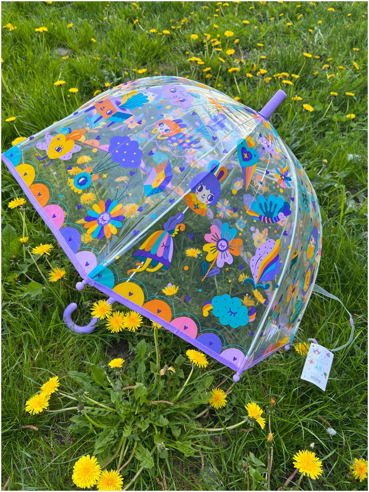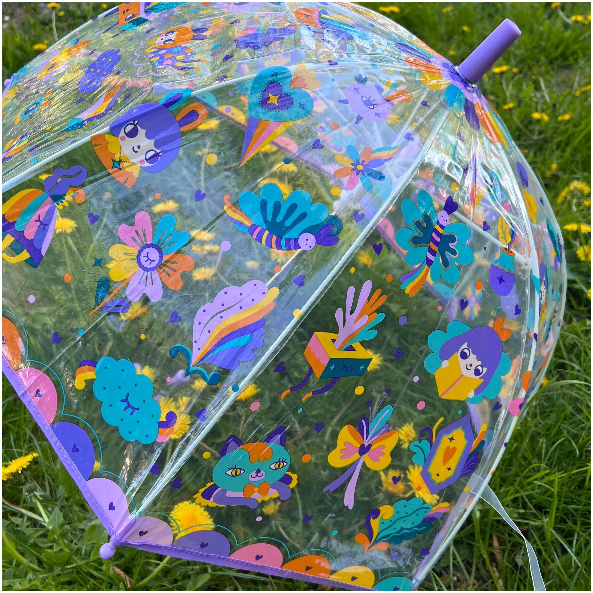 | Дополнительная информация | Детский зонтик Радуга от французской компании Djeco не даст скучать вашему ребенку даже в самый пасмурный день и подарит массу приятных ощущений от прогулок в дождливую погоду. Этот зонтик не только отлично справляется со своей прямой обязанностью – защитой от дождя, но и поднимет настроение своим привлекательным и ярким дизайном с изображением цветов, бантов, зверюшек и малышей. Ваш малыш с удовольствием будет прятаться от дождя под ярким зонтиком с красивым рисунком. Благодаря прозрачному материалу ребенок сможет наблюдать за погодными изменениями, а глубокий купол хорошо защитит голову и плечи любопытного малыша. |