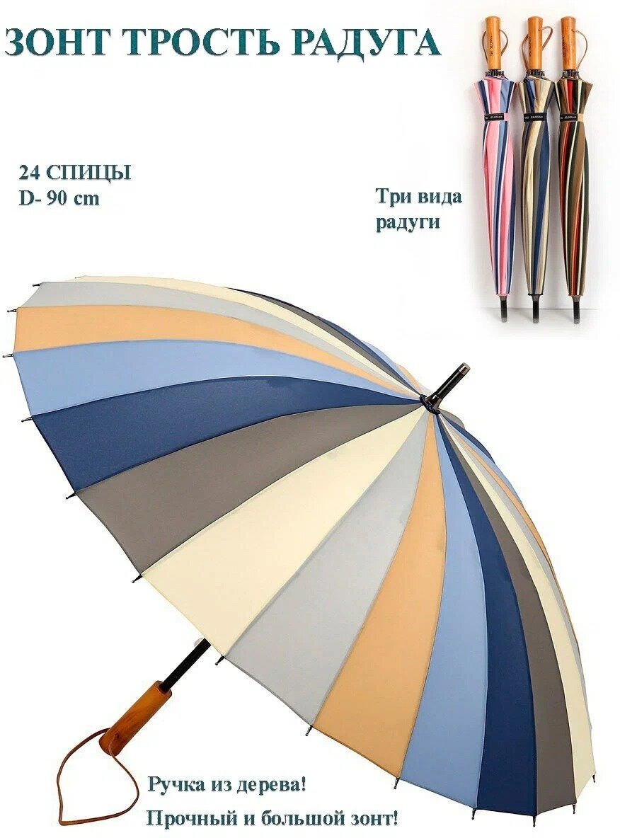 Зонт-трость Diniya, полуавтомат, купол 95 см., деревянная ручка, система «антиветер», чехол в комплекте, синий интересное: