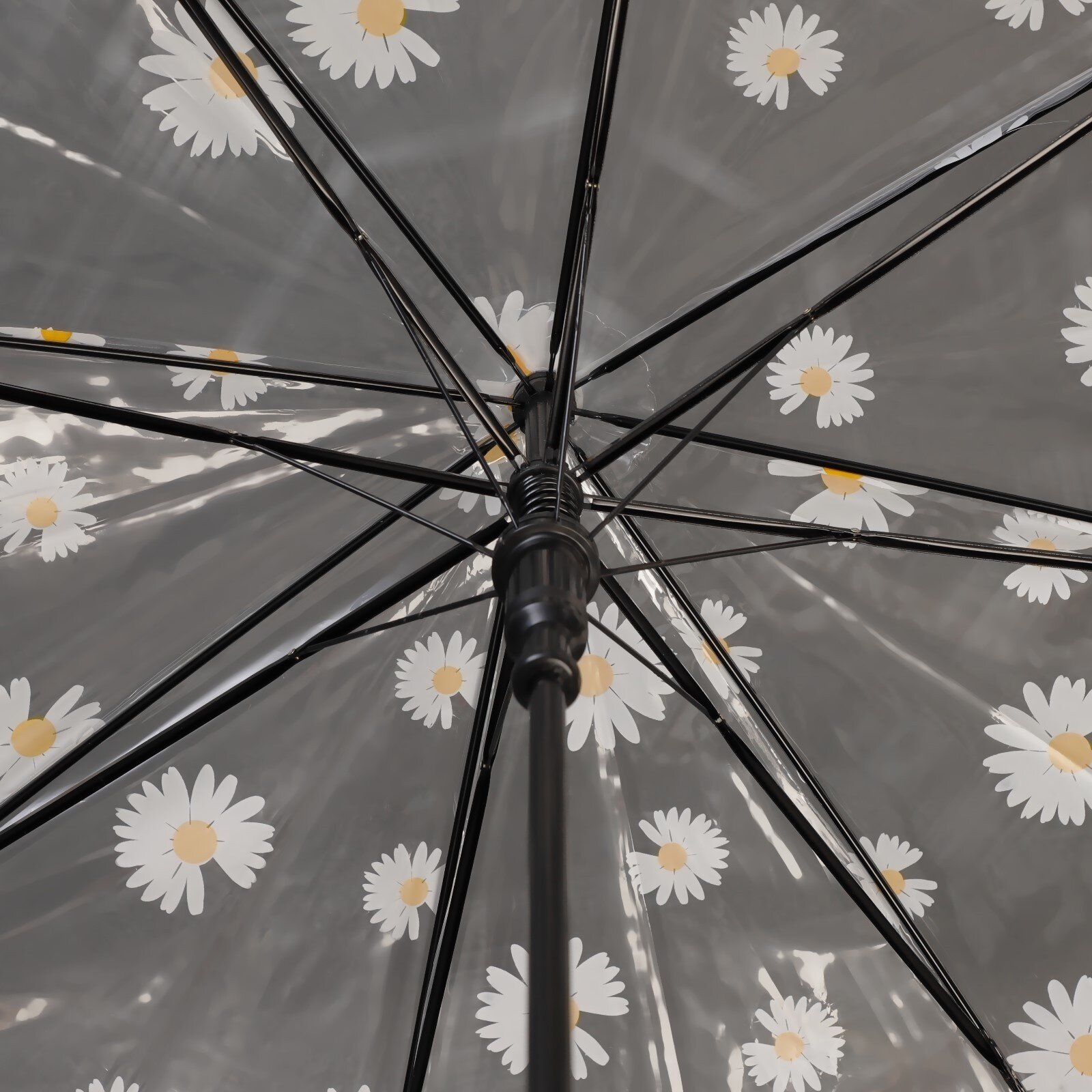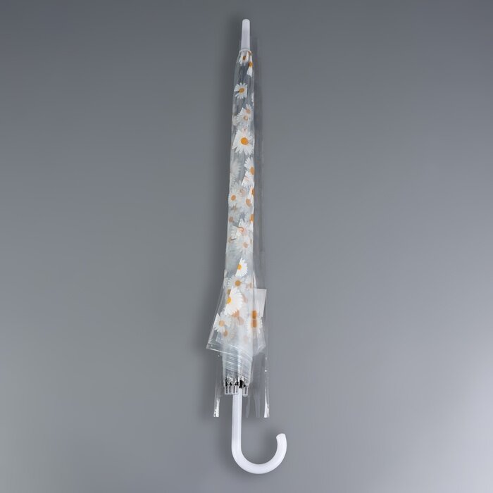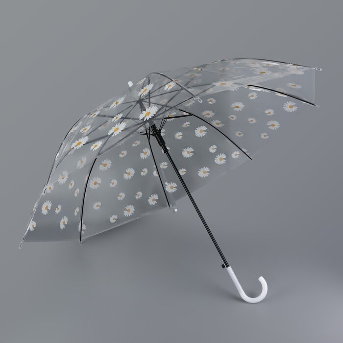Зонт - трость полуавтоматический «Ромашка», 8 спиц, R = 45/55 см, D = 110 см, цвет прозрачный/белый интересное: