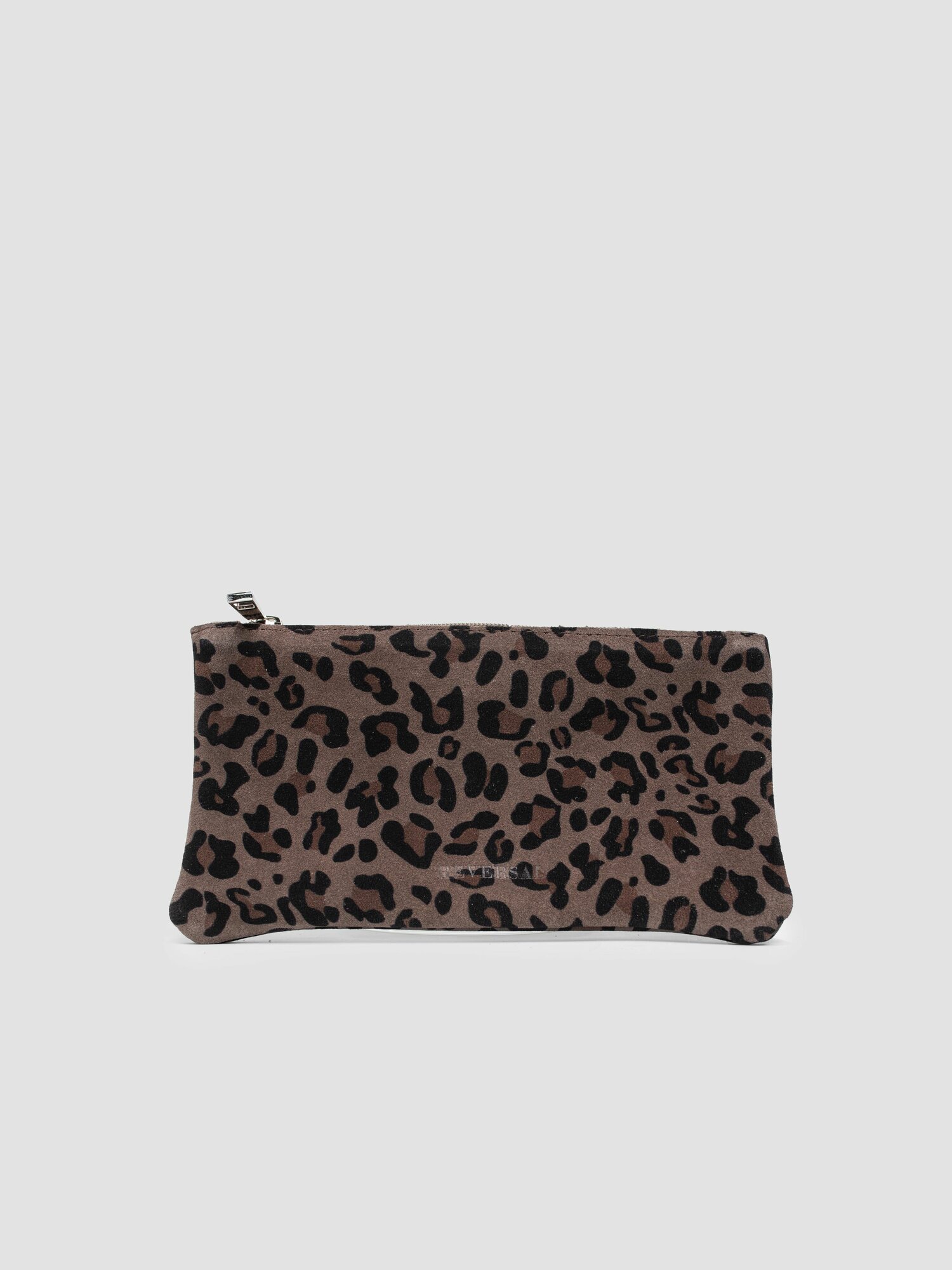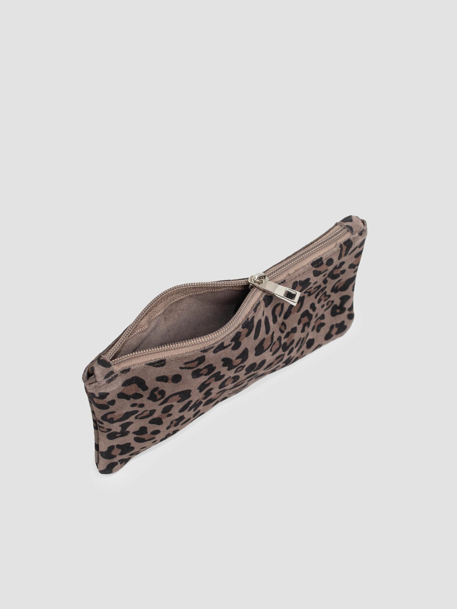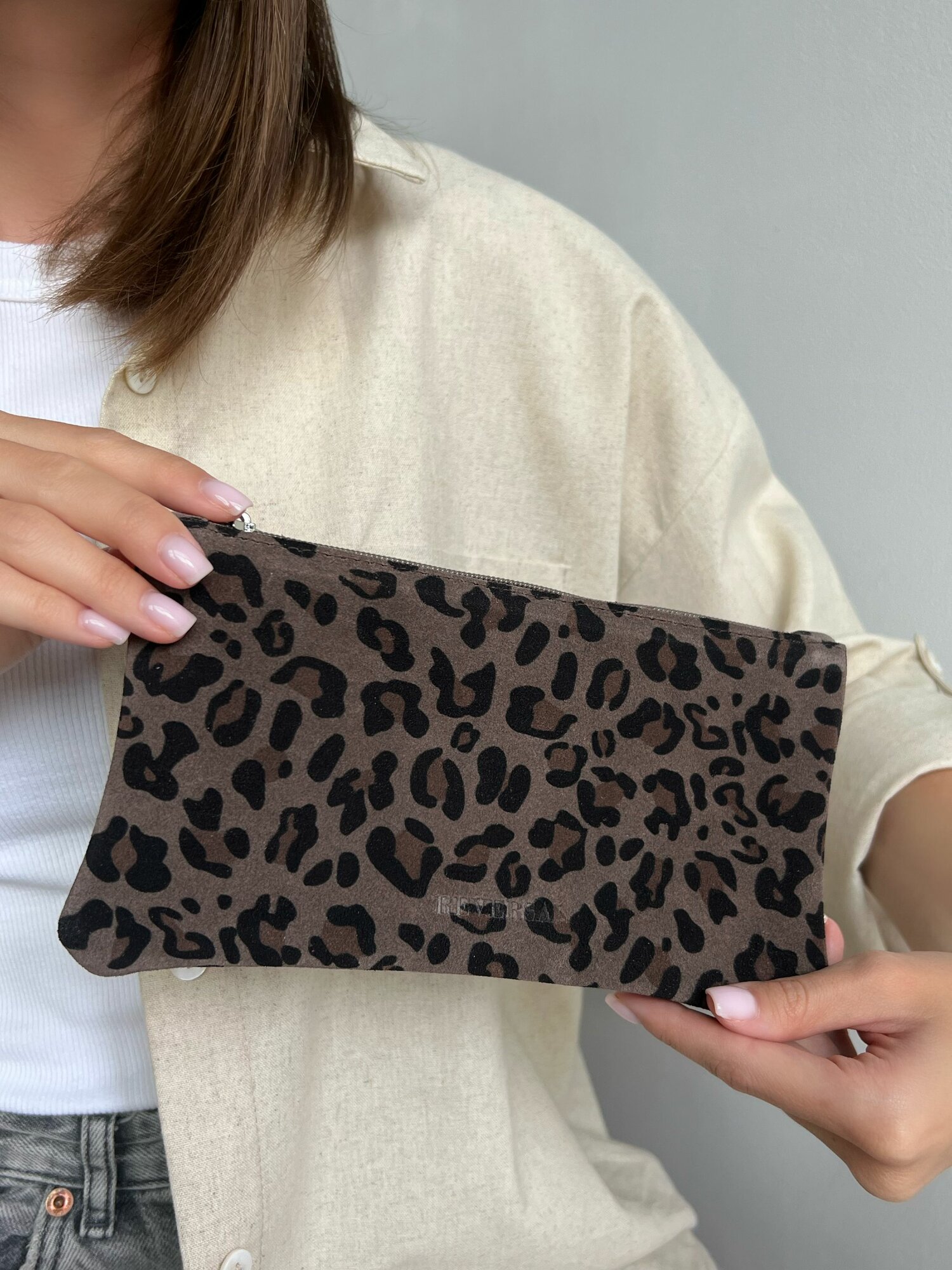 Купить Косметичка натуральная кожа на молнии плоская,Reversal,8856R_Светло-коричневый-леопард