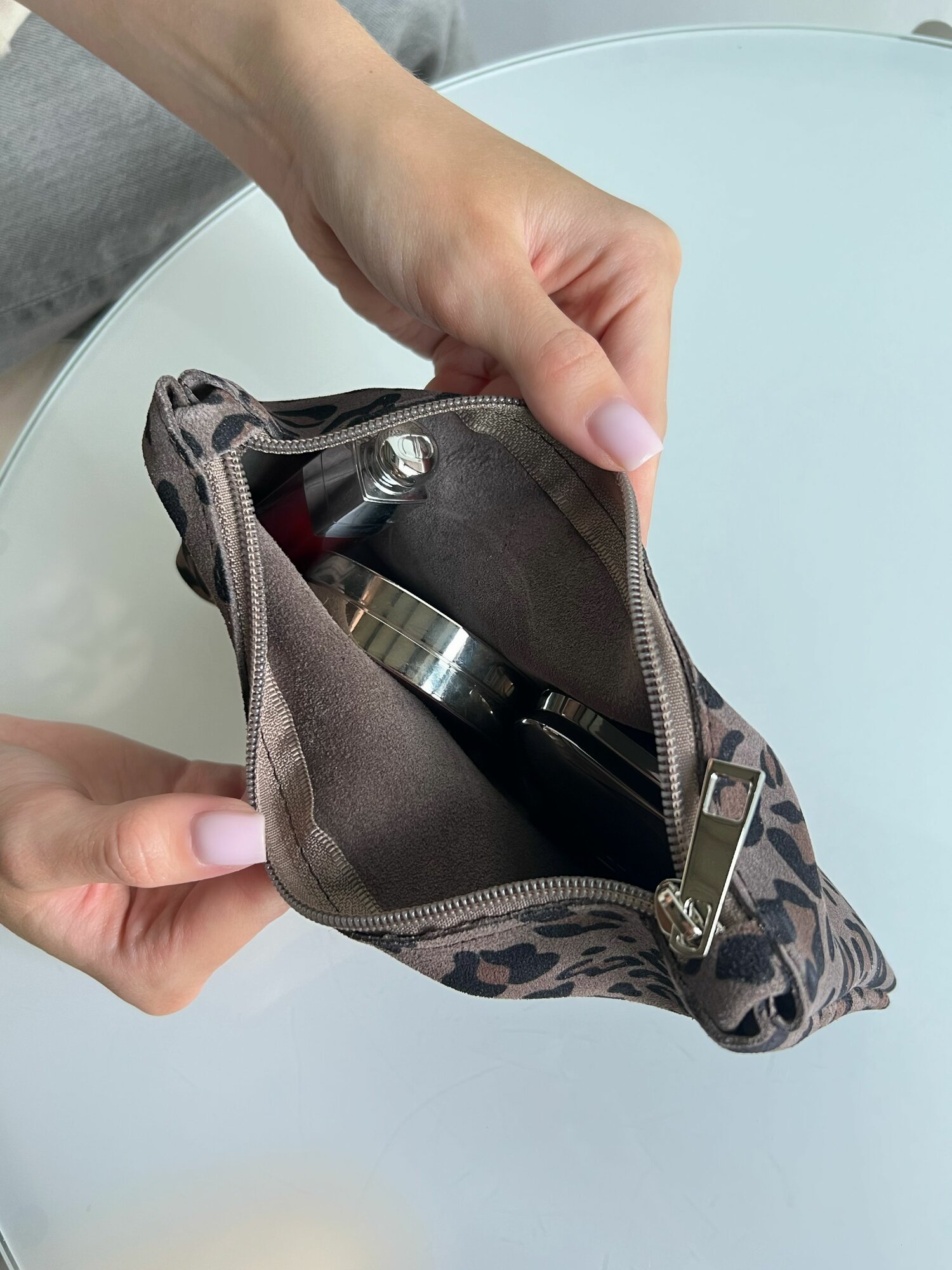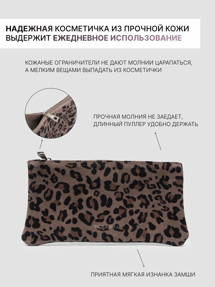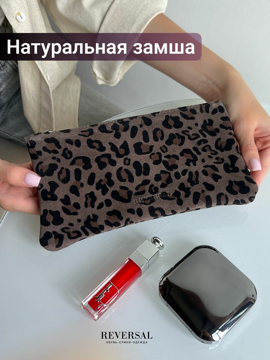 Косметичка натуральная кожа на молнии плоская,Reversal,8856R_Светло-коричневый-леопард интересное:
