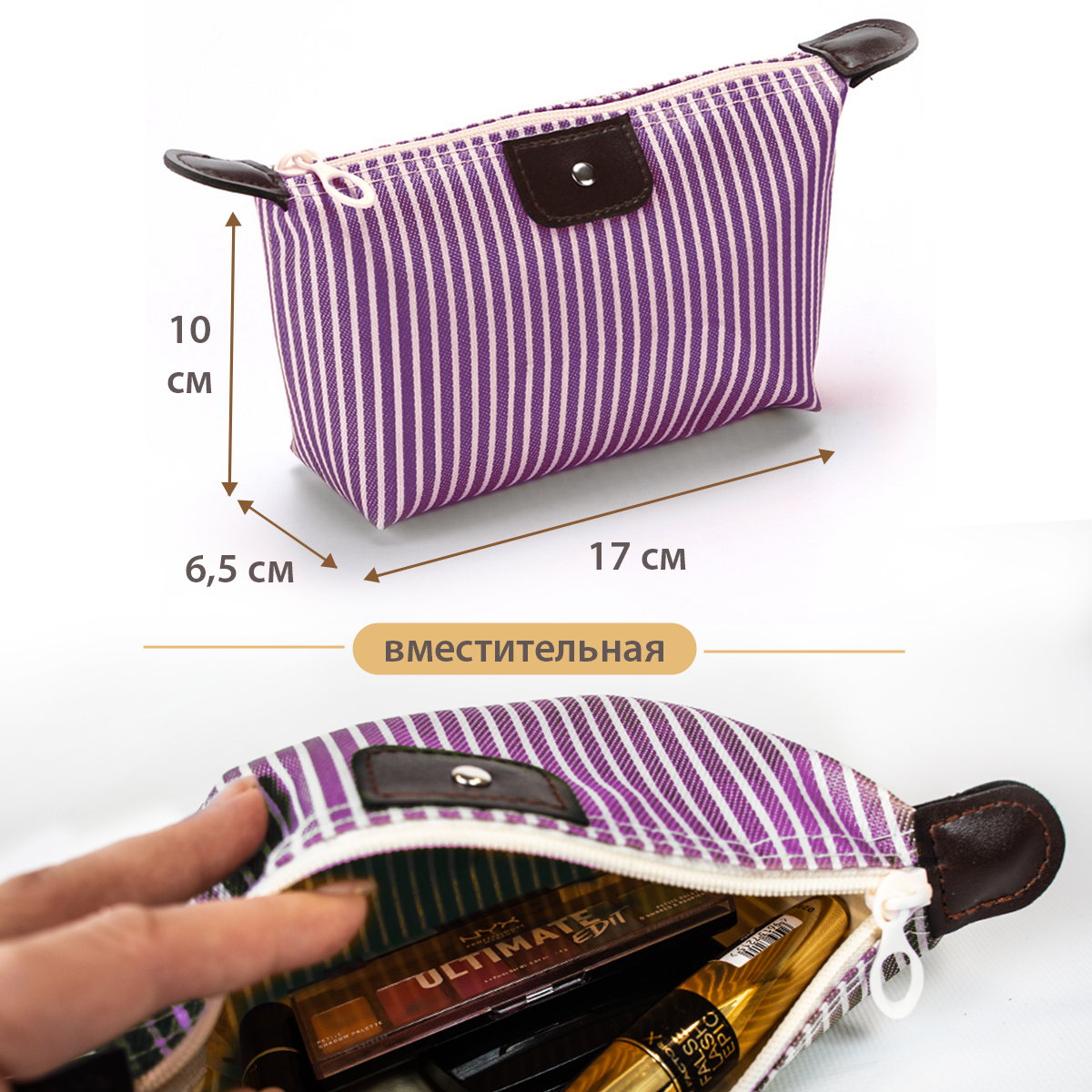 Косметичка маленькая для косметики, в сумку, FFamily, в полоску, женская 1шт, фиолет интересное: