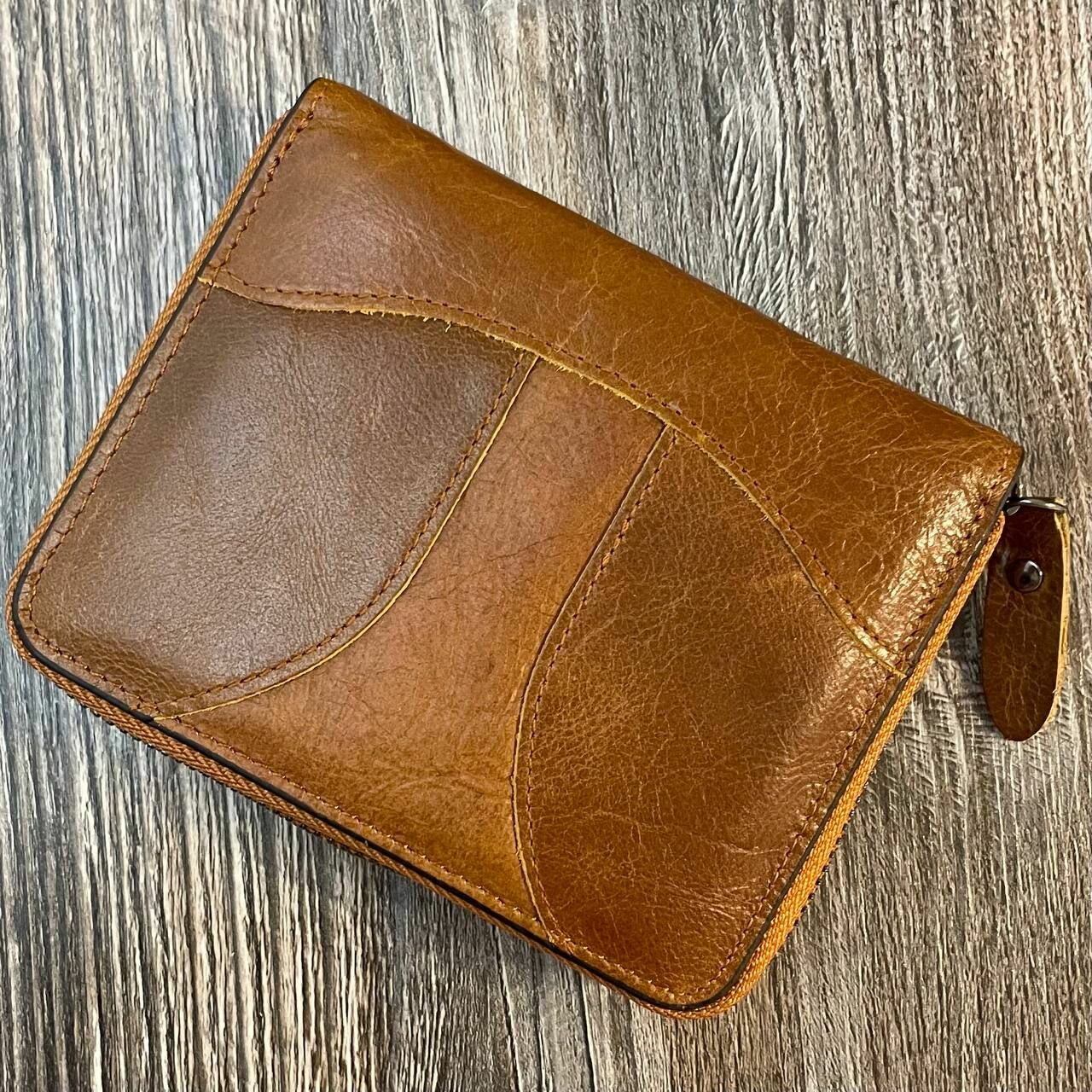 Кошелек органайзер для карт и паспорта коричневый RFID защита от кражи натуральная воловья кожа на молнии интересное: