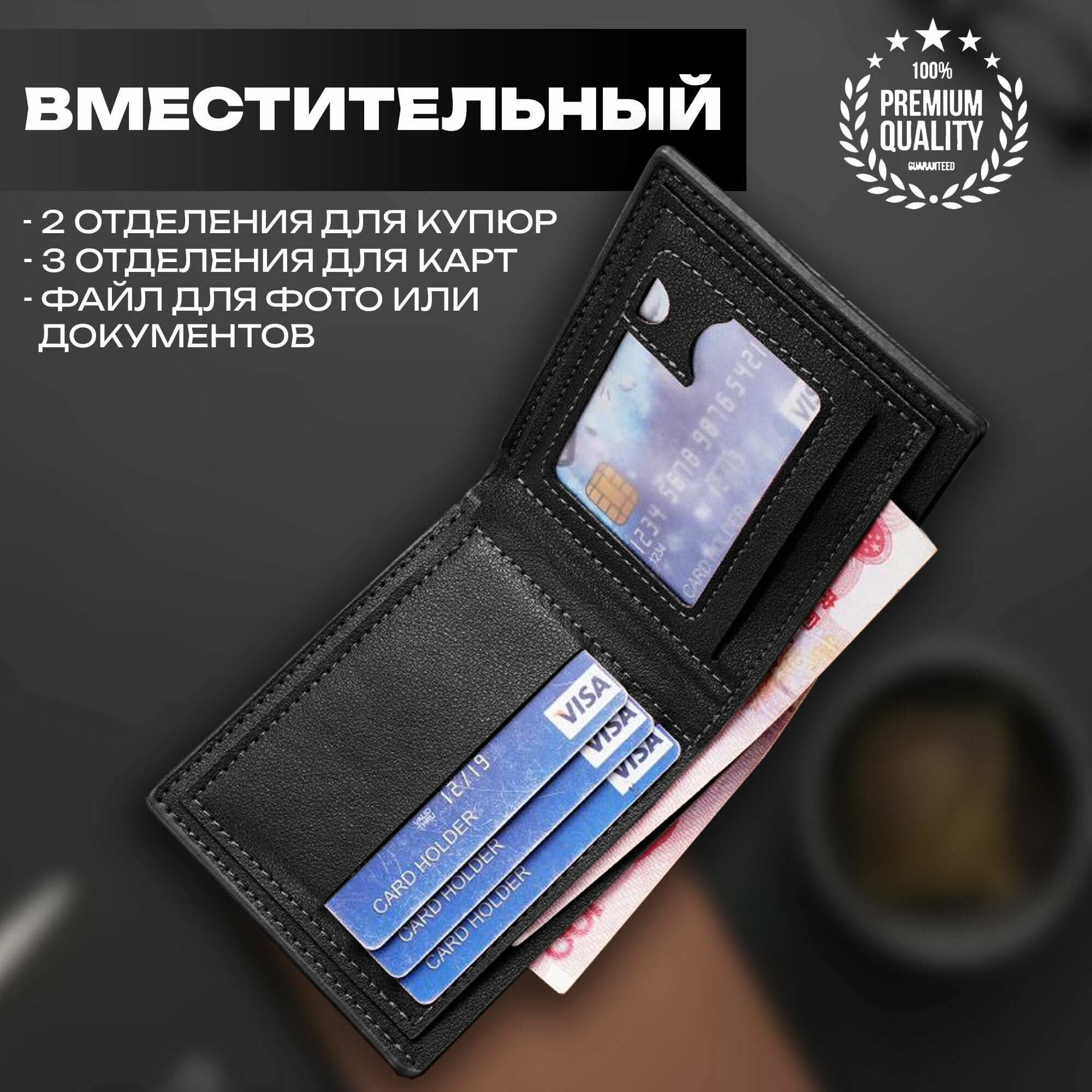 Кошелек "Black Wallet" - бумажник из экокожи для мужчин, портмоне интересное: