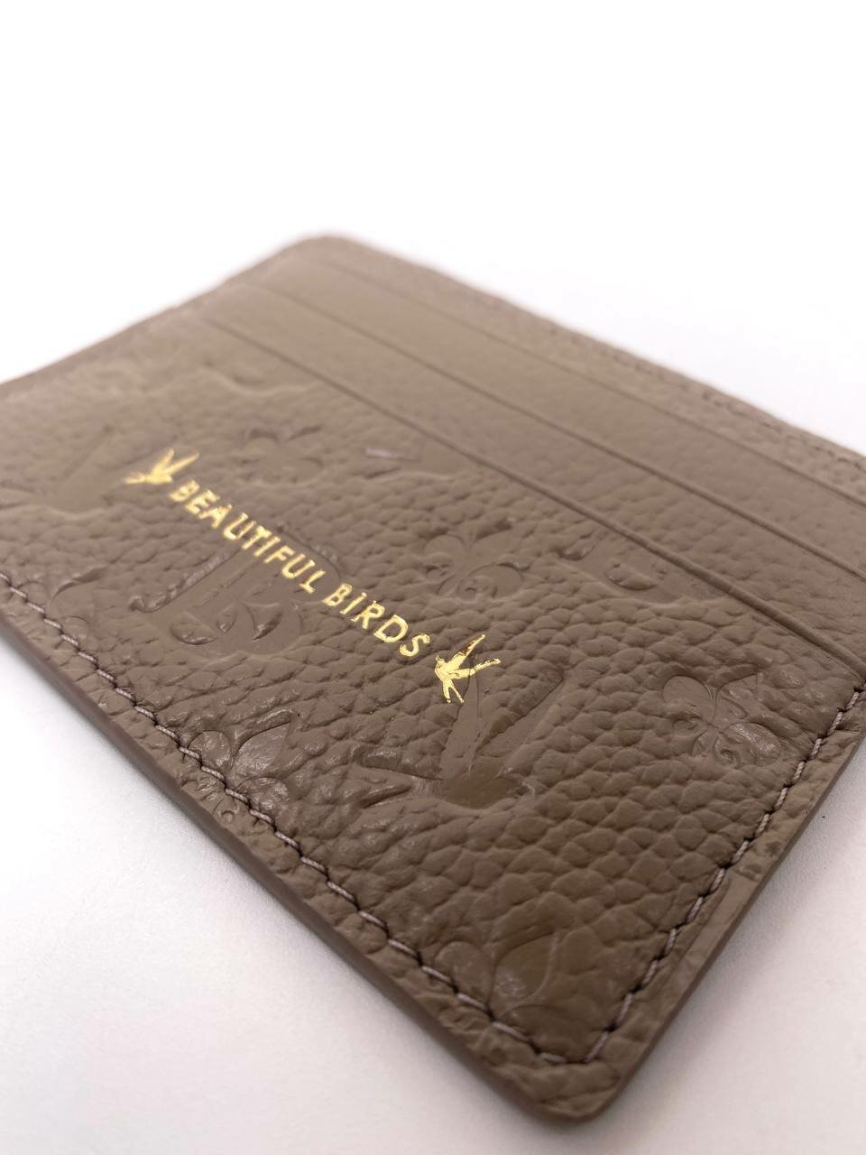 Визитница Beautiful Birds, фактура с тиснением, бежевый