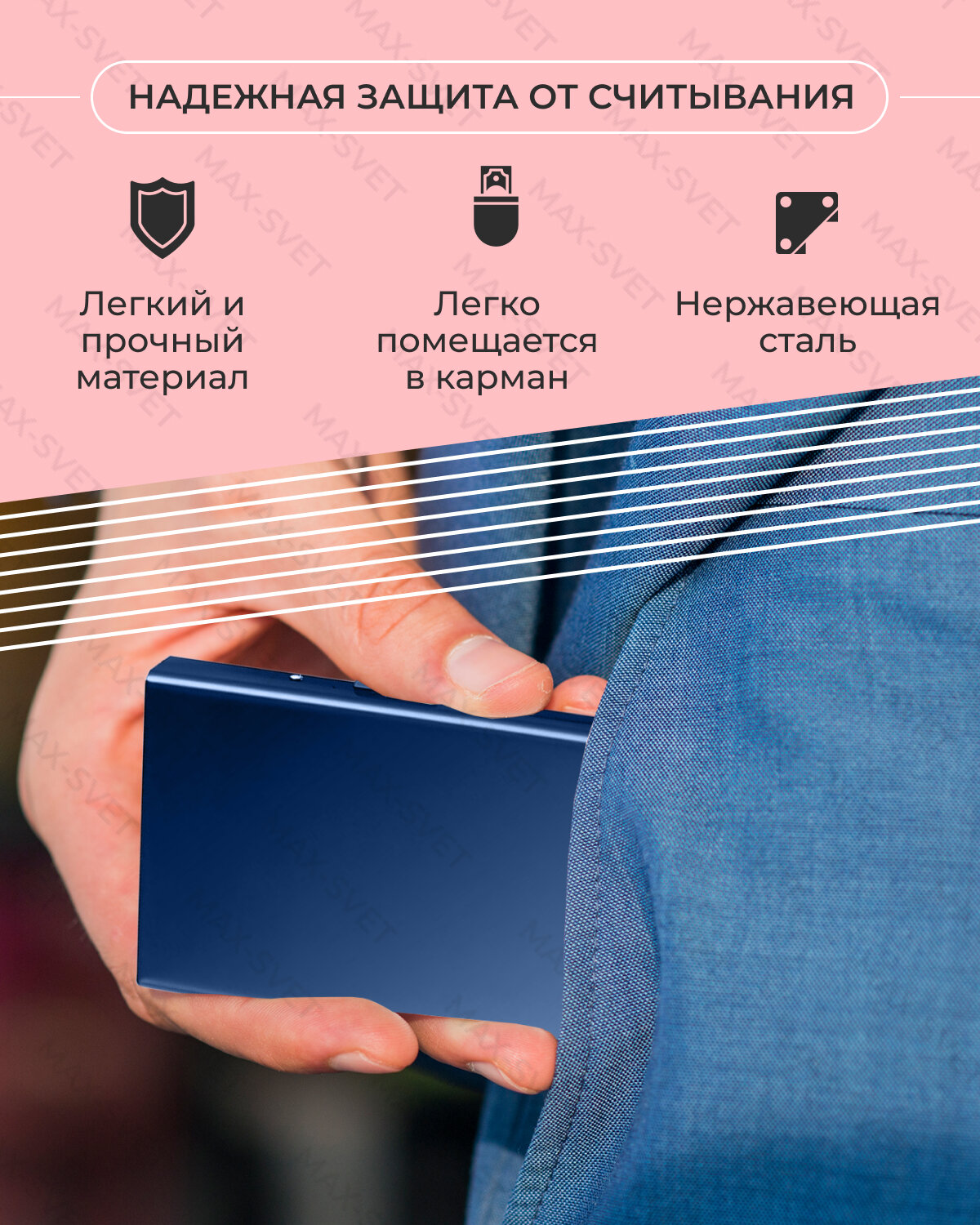 СохранитьКардхолдер S-MAX в ударопрочном металлическом корпусе из нержавеющей стали с RFID защитой от сканирования, держателями под 6 карт, синий интересное: