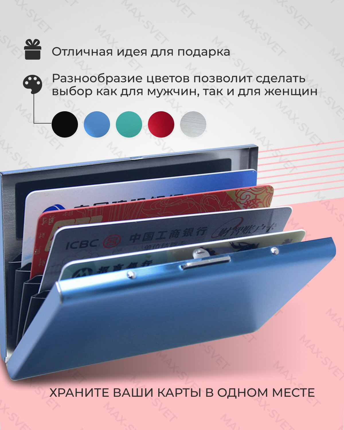 | Дополнительная информация | банковские; визитка; визитница; карточница; картхолдер; кейс; кошелек; кредитница; металлическая; футляр; чехол |