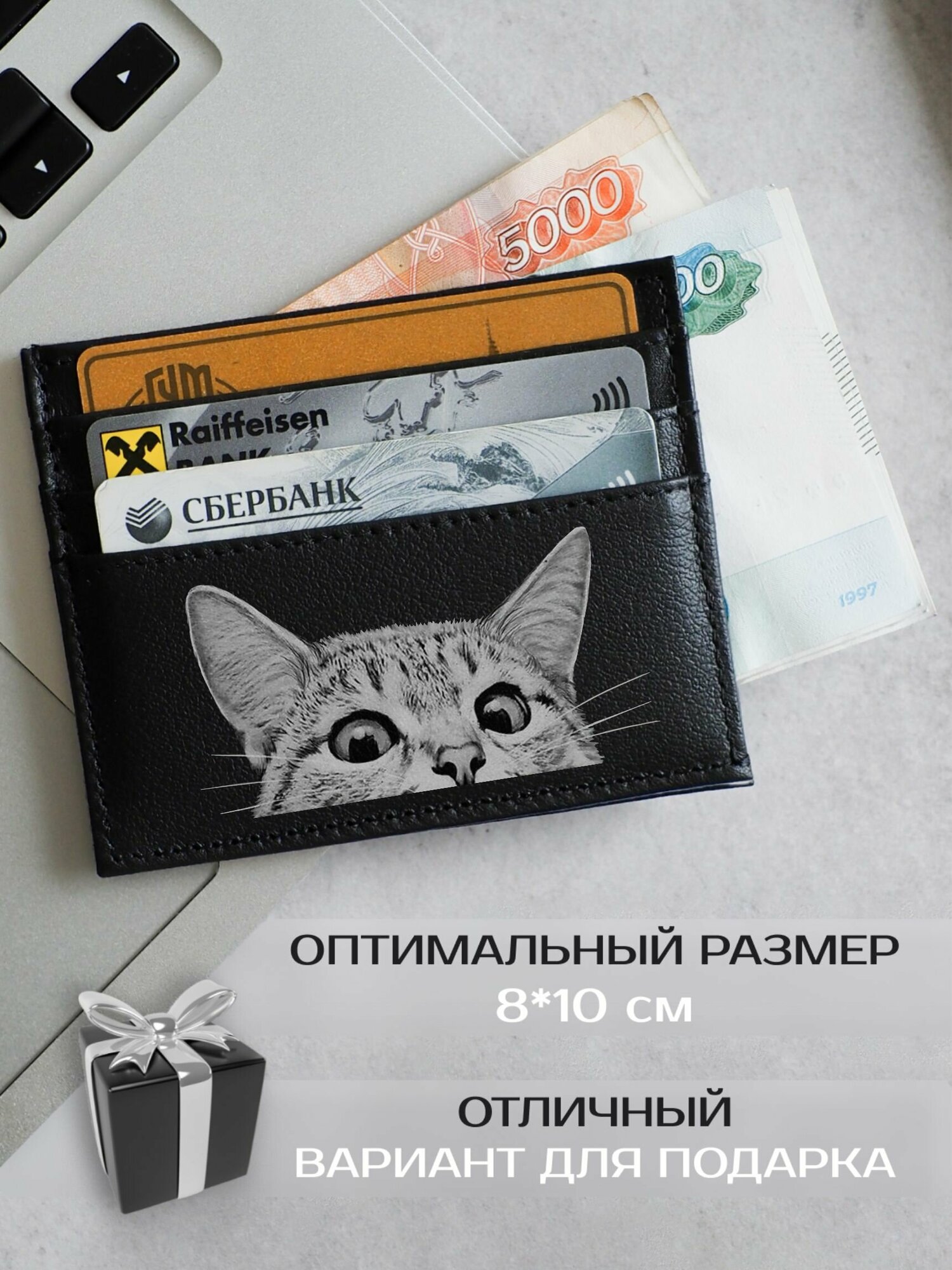 СохранитьКредитница / Футляр для карт / Картхолдер Russian.Handmade из натуральной кожи с принтом Милые няшные кошки №4 интересное: