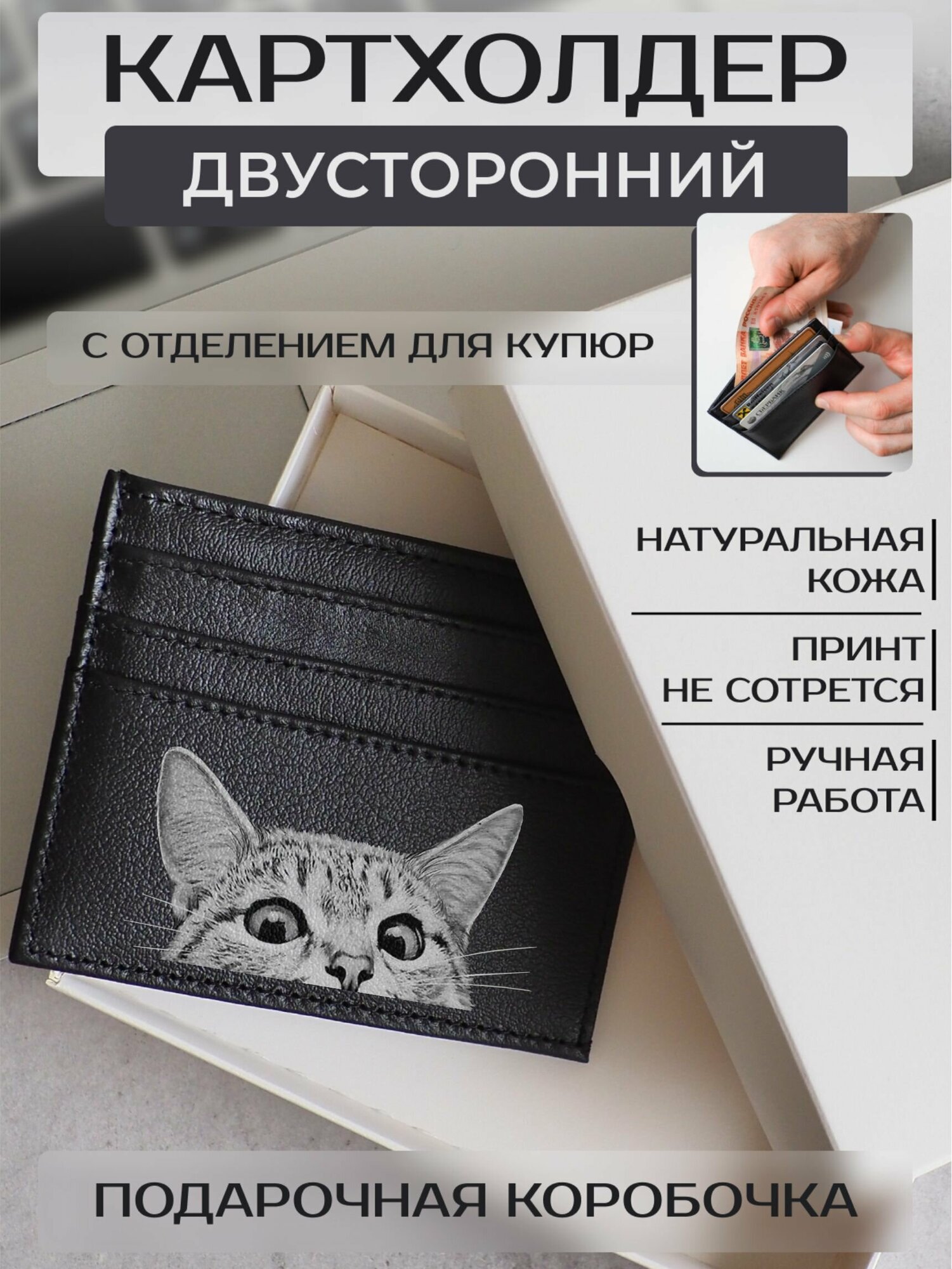 Кредитница / Футляр для карт / Картхолдер Russian.Handmade из натуральной кожи с принтом Милые няшные кошки №1