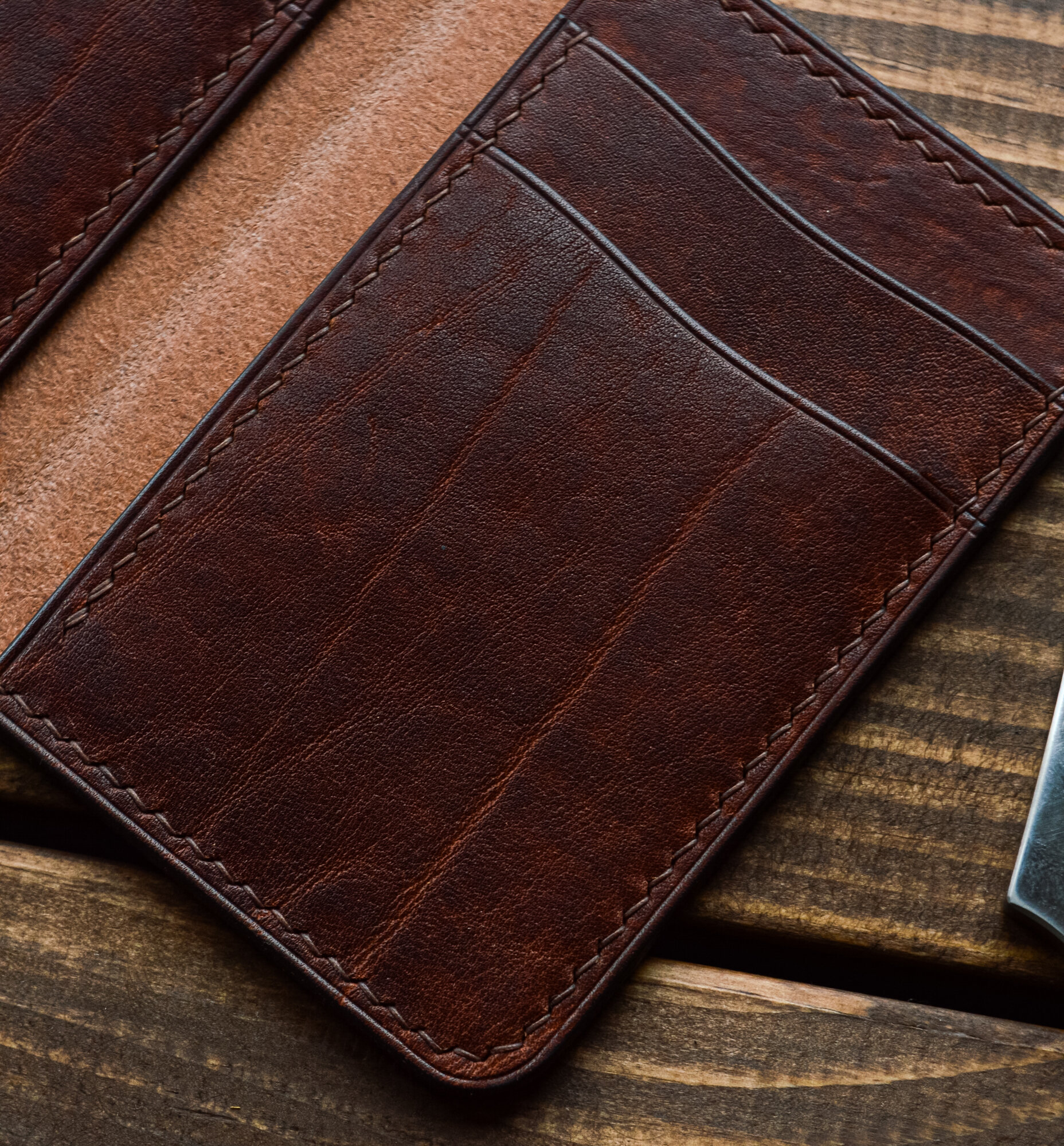 Картхолдер из натуральной кожи ручной работы Орех / Кожаный мини кошелек для мужчины и женщины. Цвет коричневый