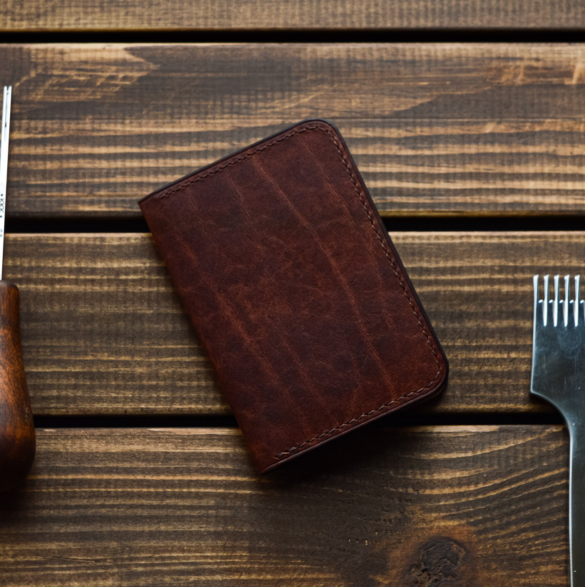 Картхолдер из натуральной кожи ручной работы Bourbon / Кожаный мини кошелек, цвет бордовый