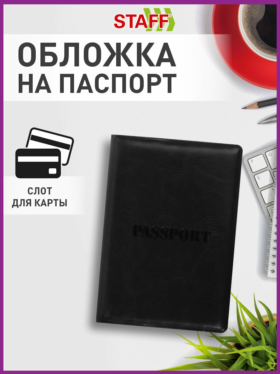 Обложка для паспорта STAFF, полиуретан под кожу, "паспорт", черная, 237599 интересное: