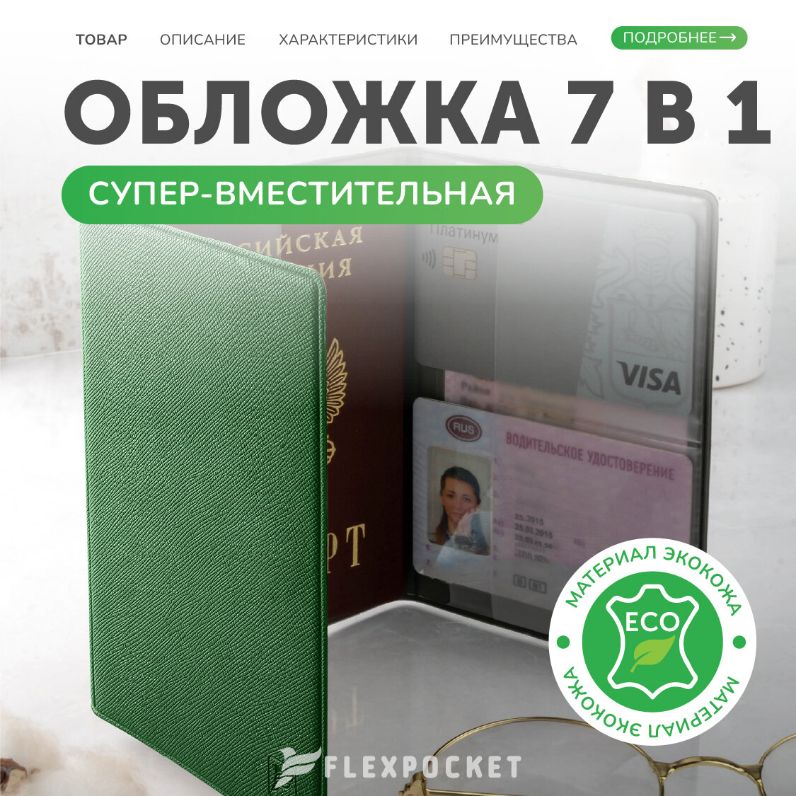 Обложка на паспорт и документы Flexpocket, зеленый интересное: