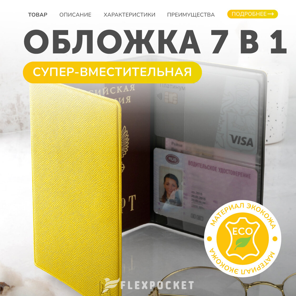 Обложка на паспорт и документы Flexpocket, желтый интересное: