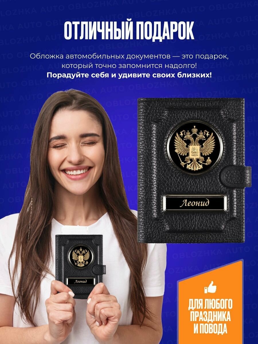 СохранитьКожаная обложка для автодокументов и паспорта Леонид / Обложка для автодокументов мужская / Подарок мужчине / Обложка для автодокументов / Обложка для паспорта / Бумажник водителя интересное:
