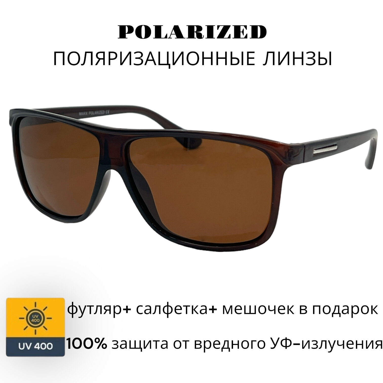 Солнцезащитные очки c поляризацией MARX, коричневые линзы, оправа коричневая глянцевая интересное: