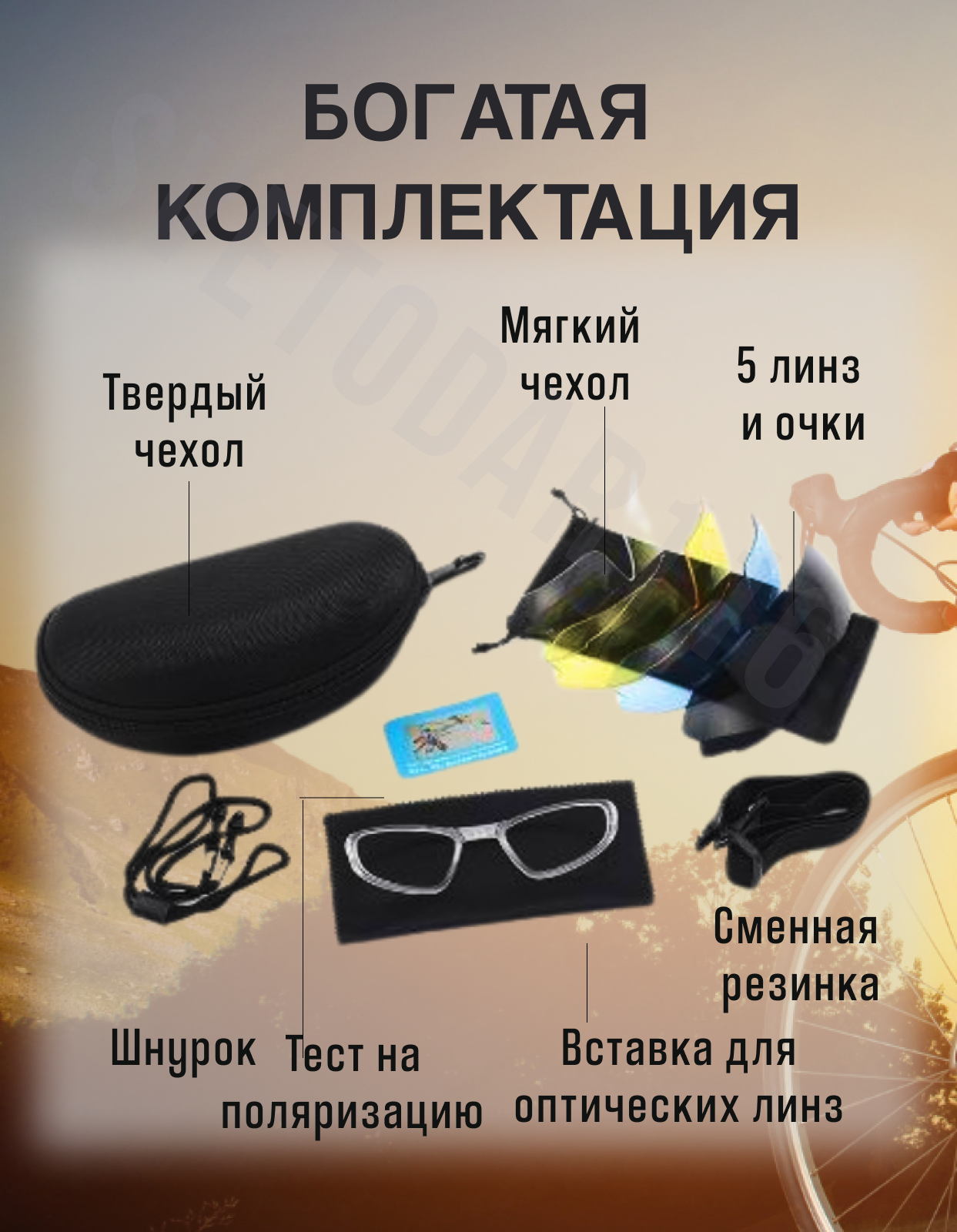 | Комплектация | салфетка, сменные линзы, футляр, чехол-мешок |