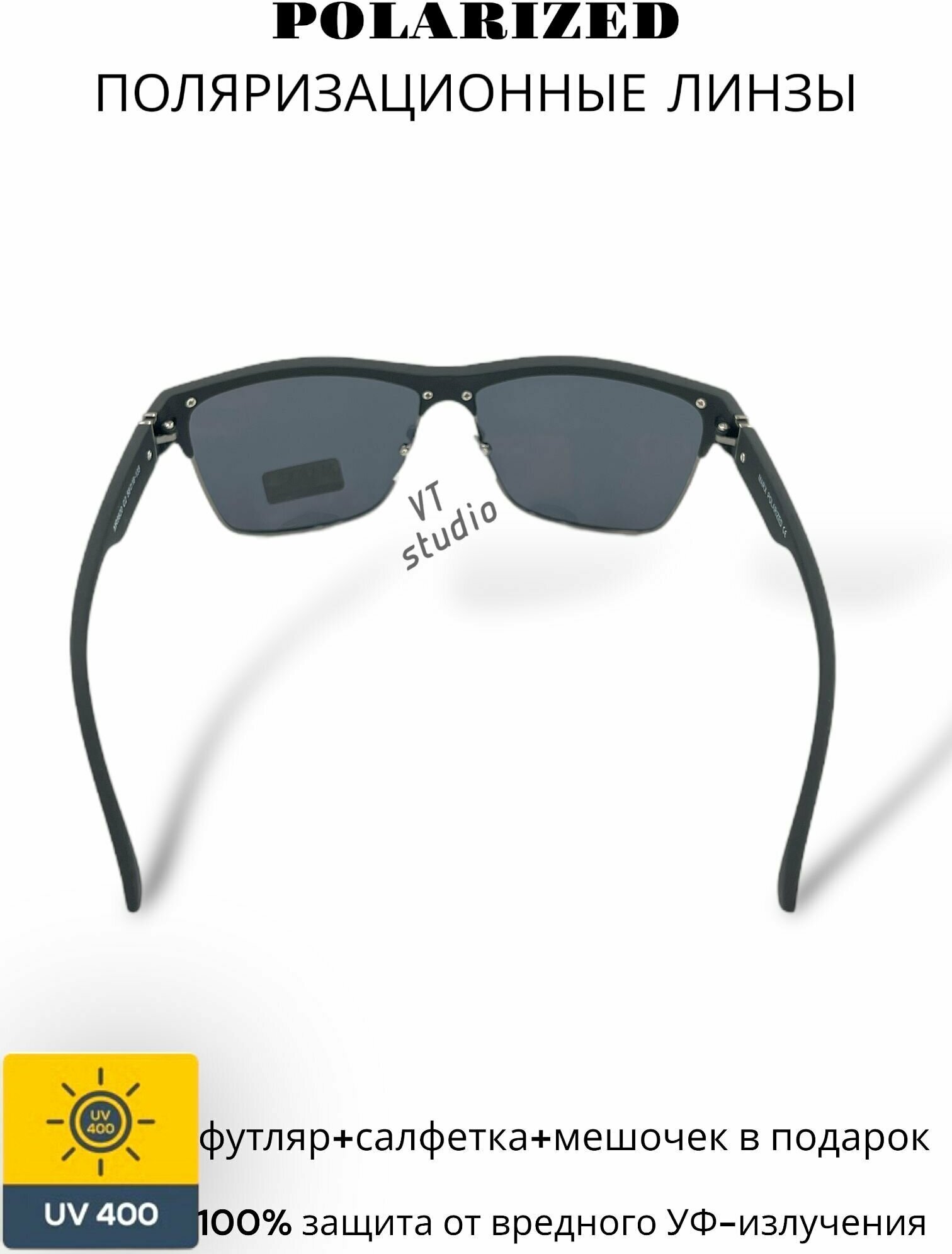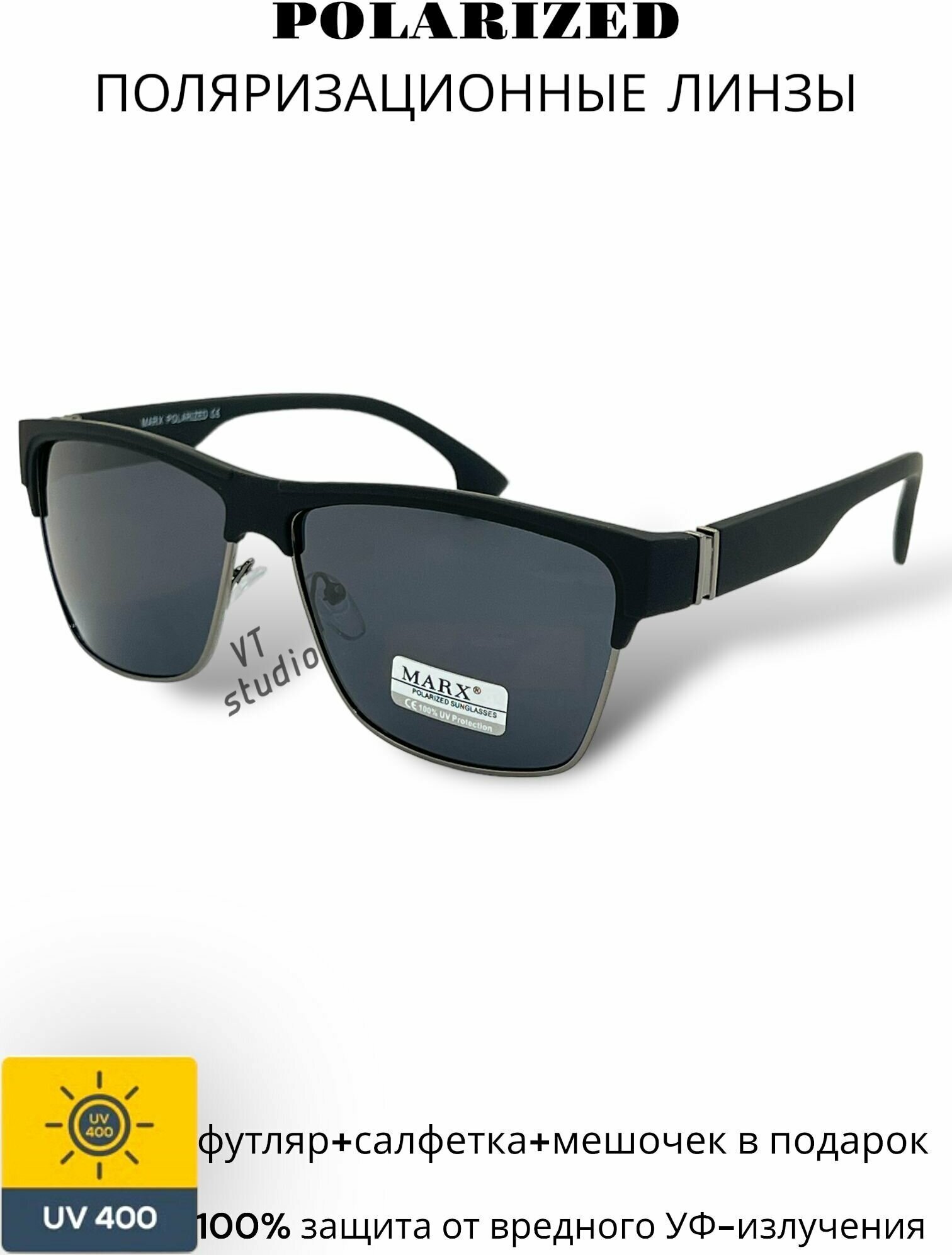 Солнцезащитные очки c поляризацией MARX, черные линзы, оправа черная матовая. интересное: