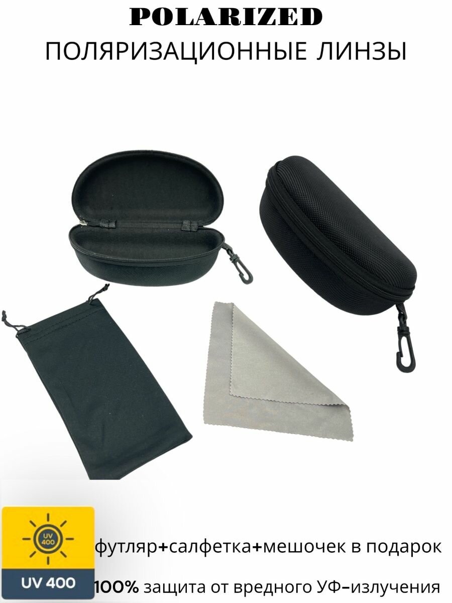 Солнцезащитные очки c поляризацией , черные линзы, оправа черная глянцевая