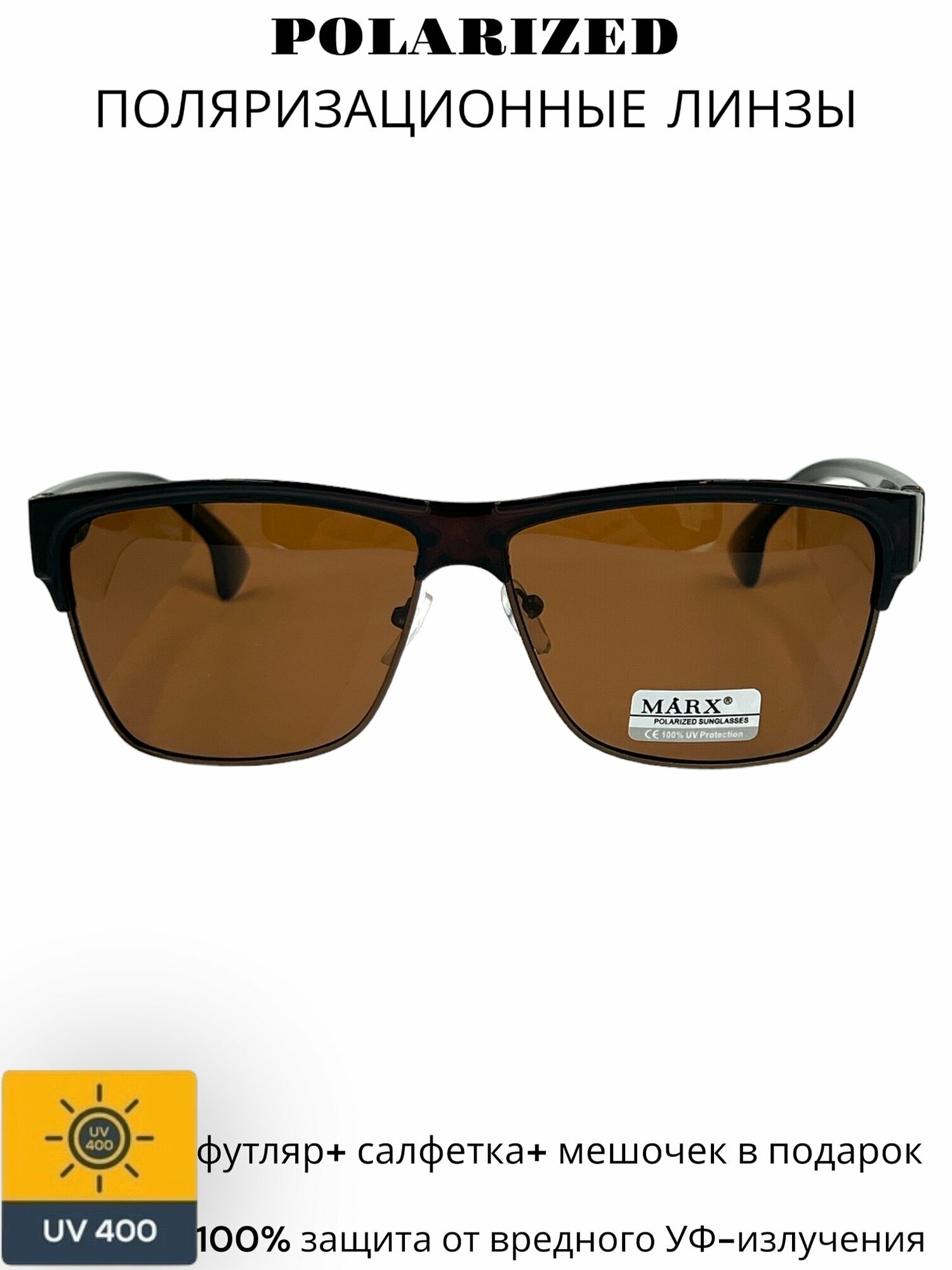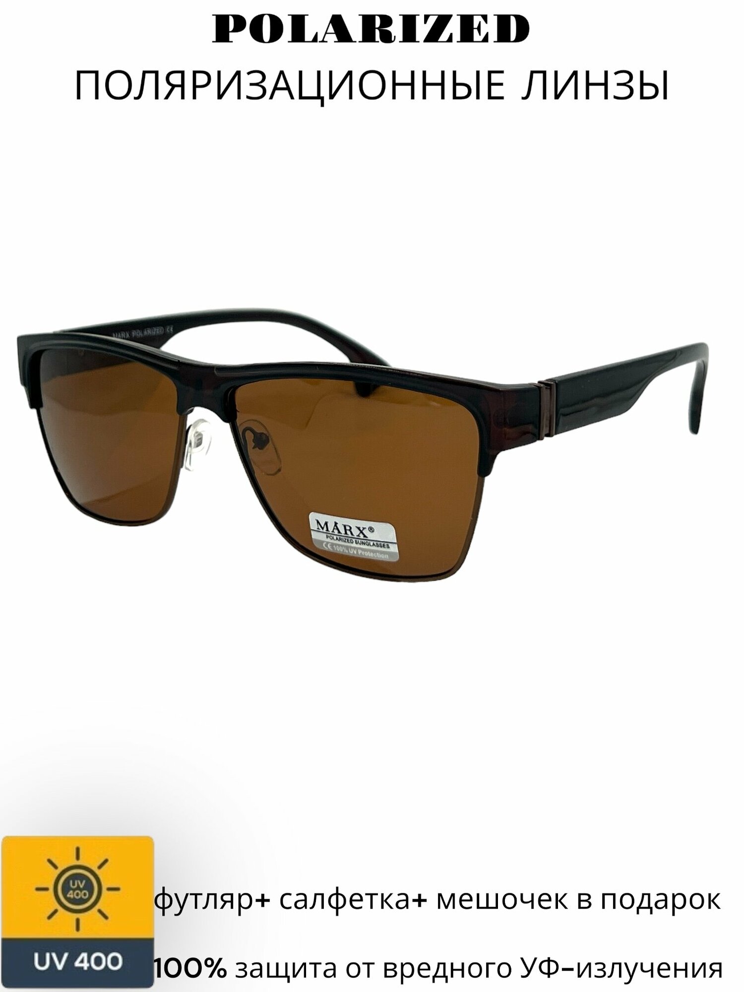 Солнцезащитные очки c поляризацией MARX 8820, коричневые линзы, оправа коричневая матовая