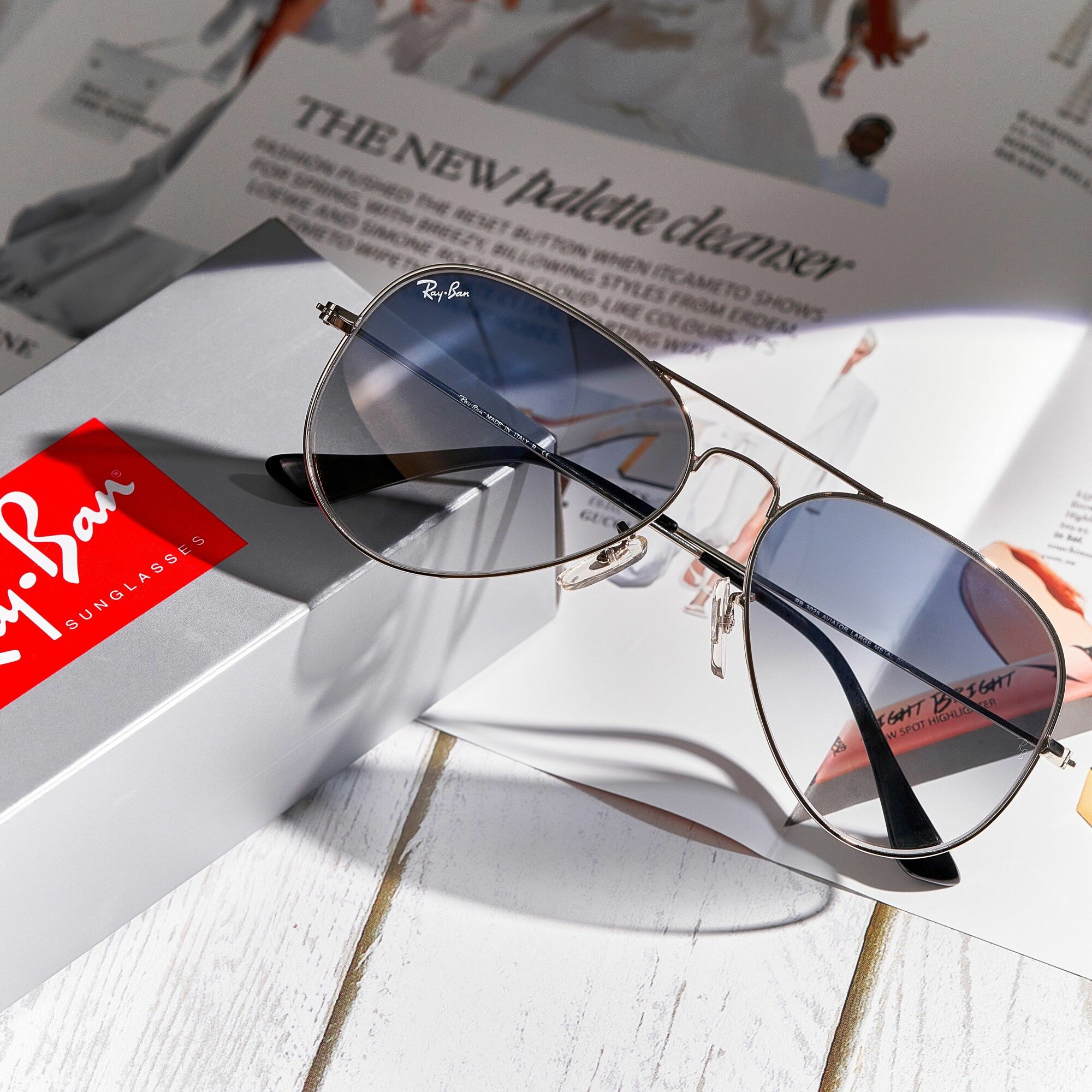 Солнцезащитные очки Ray Ban RB3025 AVIATOR CLASSIC в серебряной оправе с голубыми линзами интересное: