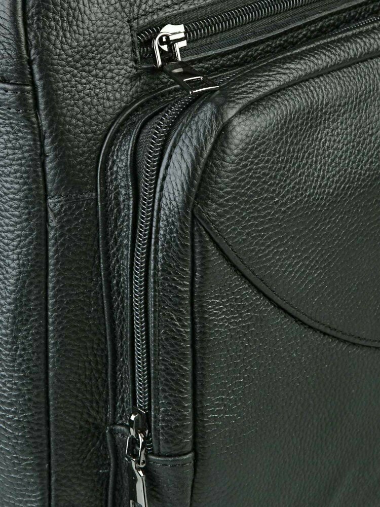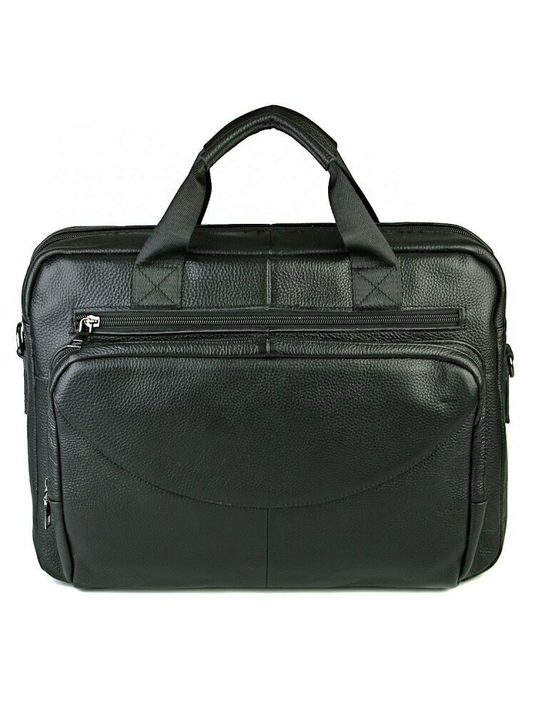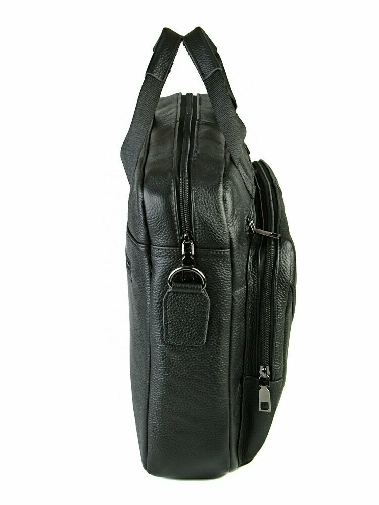 Купить Портфель мужской, натуральная кожа, зернистая фактура, на молнии, с плечевым ремнем, вмещает А4, черный