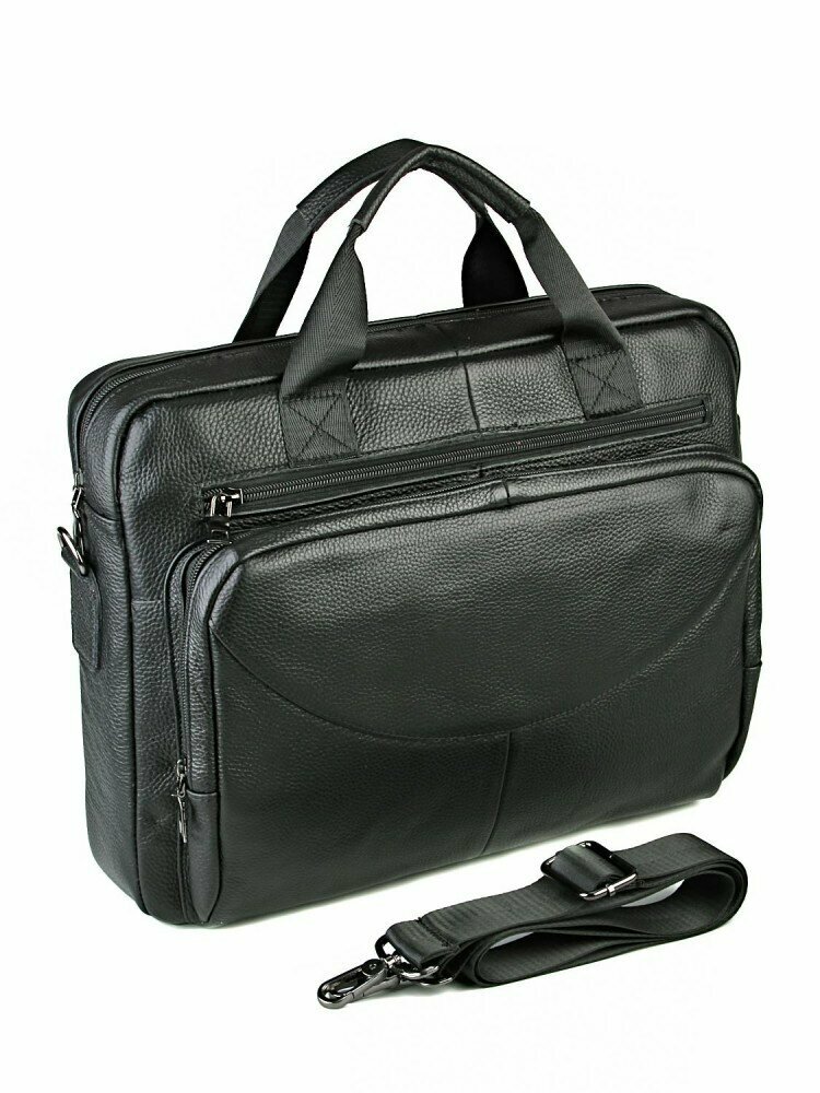 Портфель мужской, натуральная кожа, зернистая фактура, на молнии, с плечевым ремнем, вмещает А4, черный интересное: