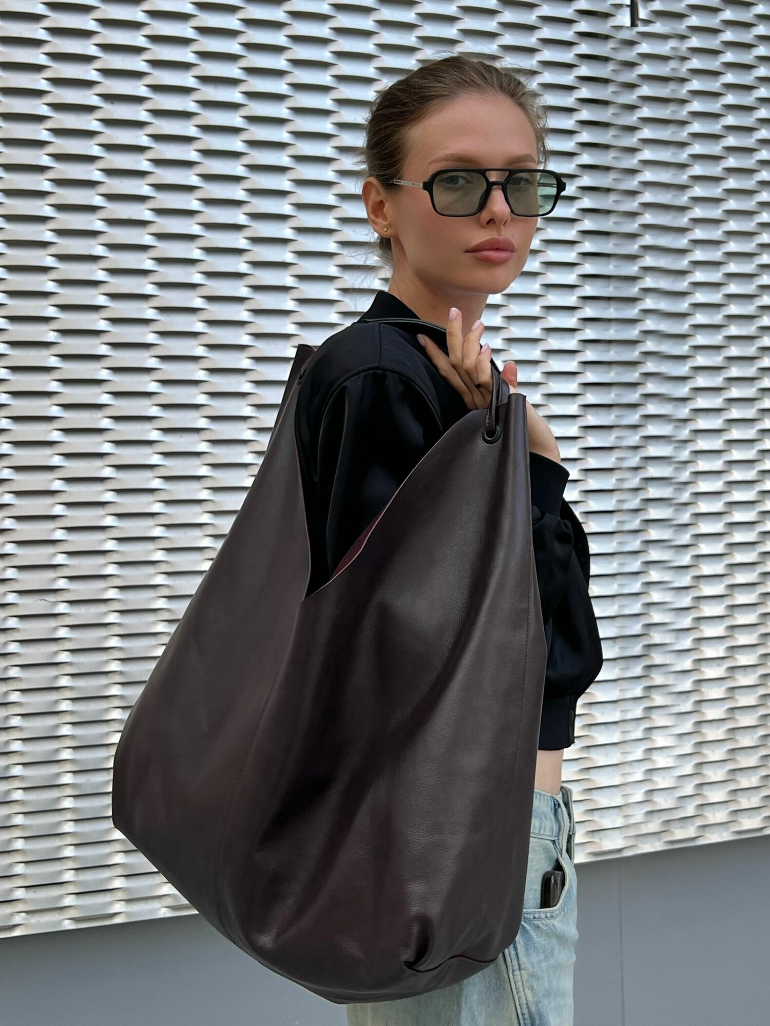 Шоппер натуральная кожа сумка большая мягкая на плечо , Reversal, 88500R_Бордовое-облако интересное: