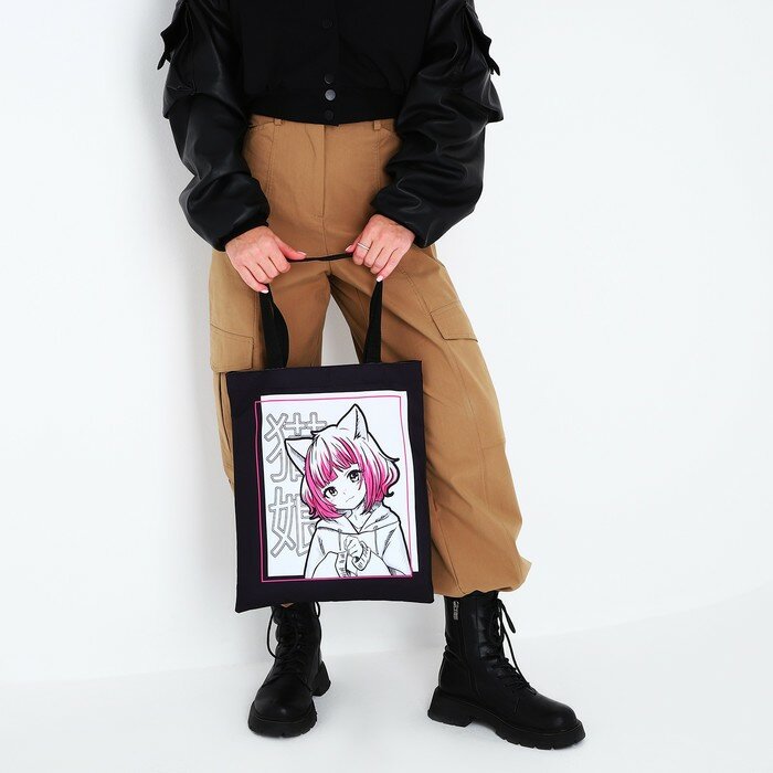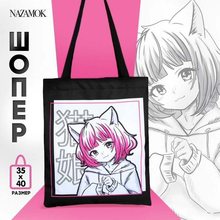 NAZAMOK Шопер детский для девочки без застёжки, цвет чёрный/белый