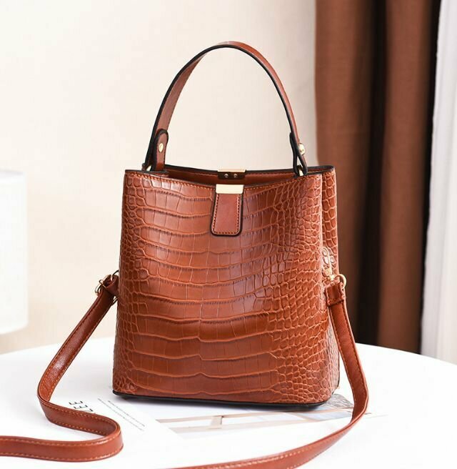 Сумка ведро Bottoncini, фактура под рептилию, светло-коричневый