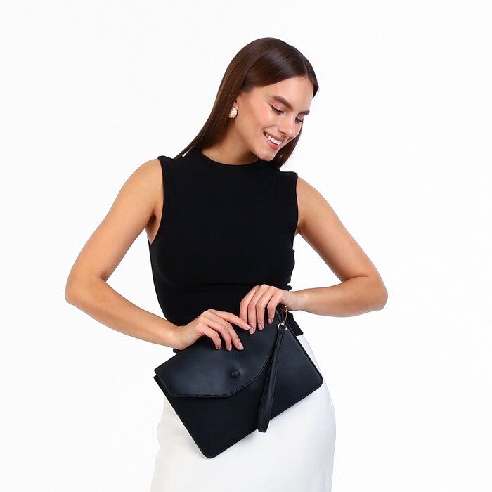 Сумка-клатч на магните, ремешок на запястье, цвет чёрный интересное:
