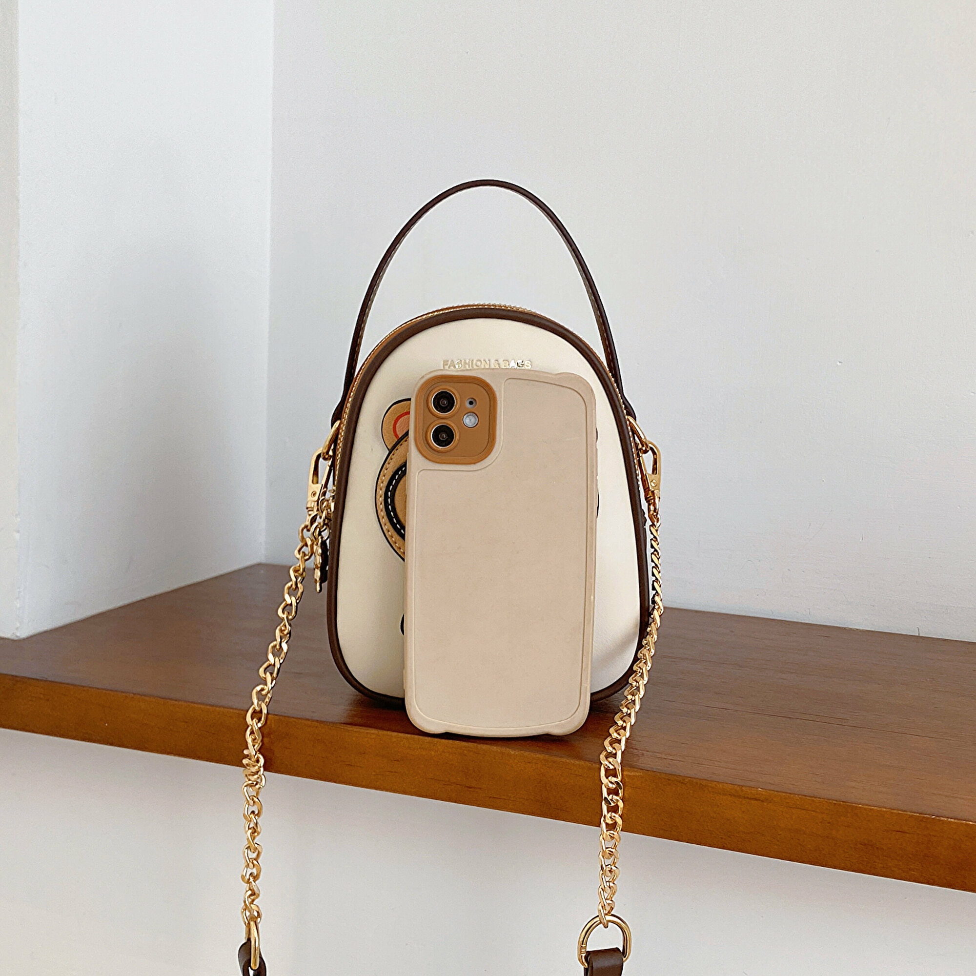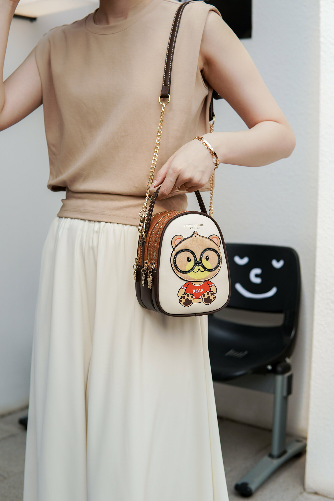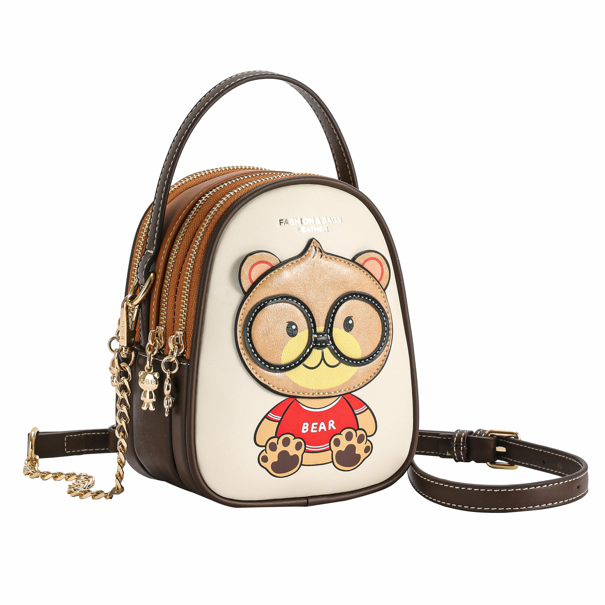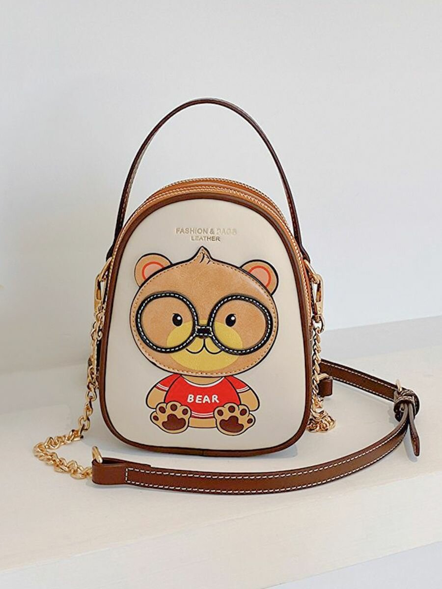 Женская сумка Beibaobao кросс-боди с медведем, светло-бежевая, из экокожи, S-размер