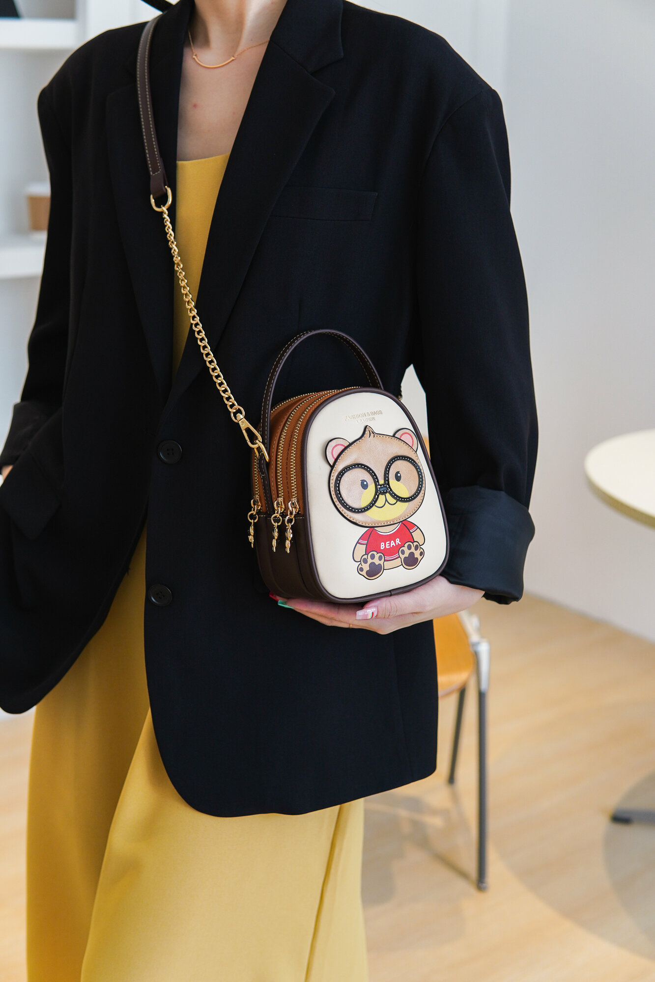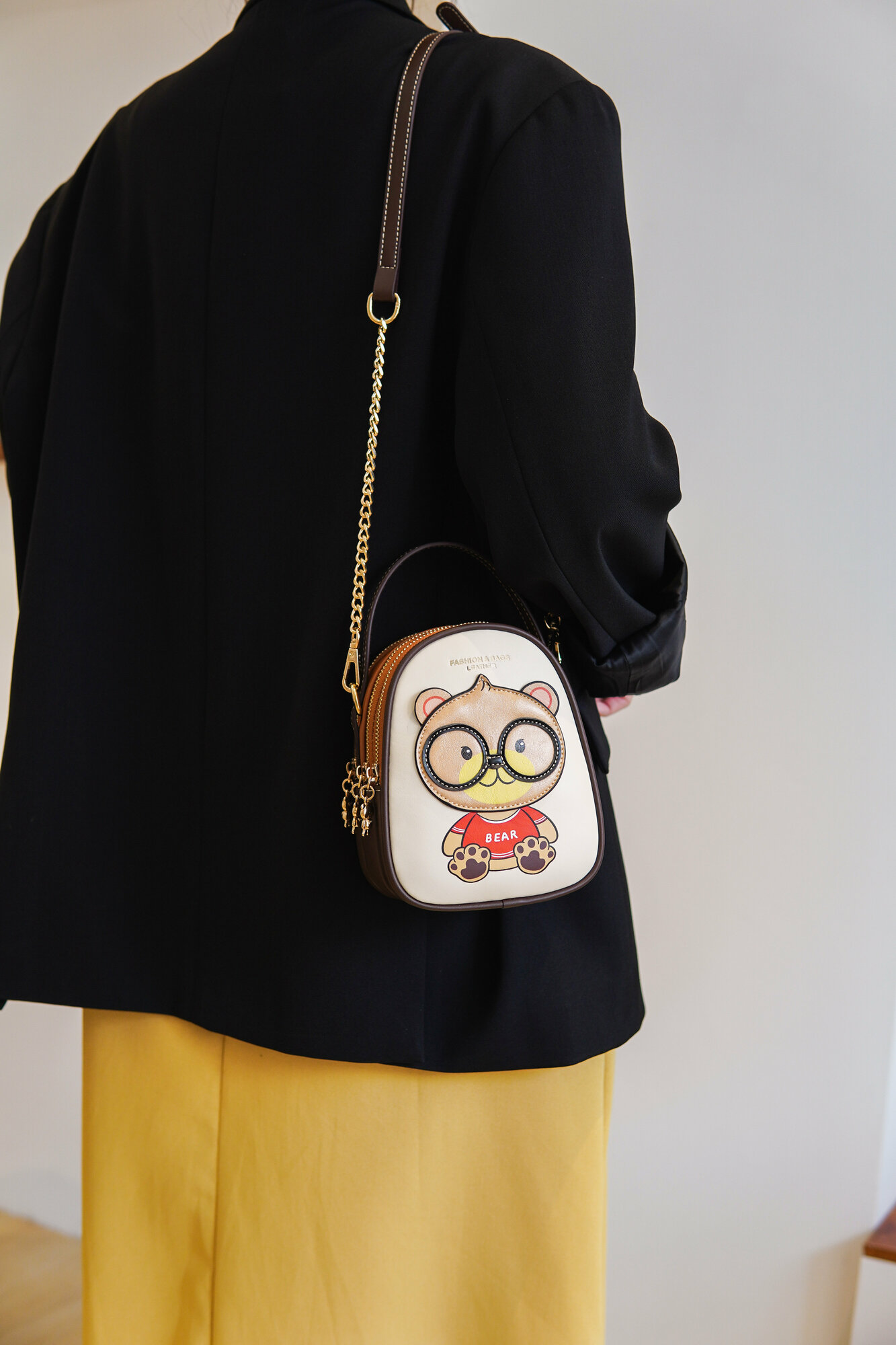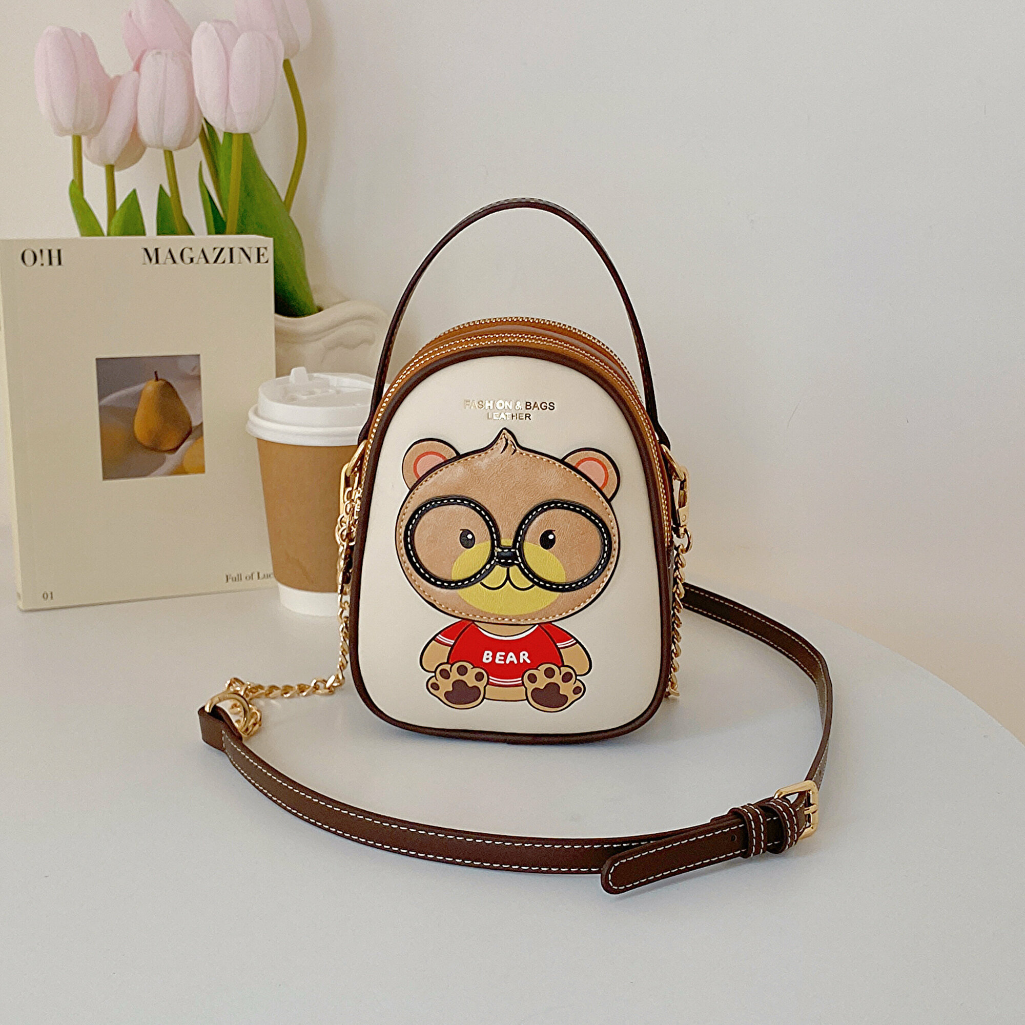 Женская сумка Beibaobao кросс-боди с медведем, светло-бежевая, из экокожи, S-размер