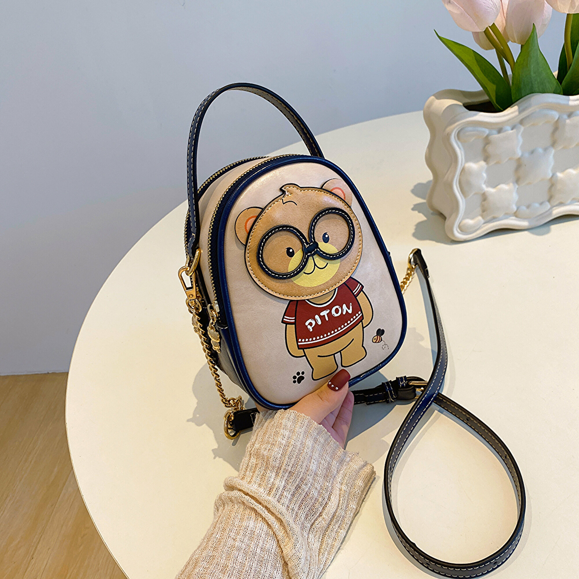 Купить Женская сумка Beibaobao кросс-боди с медведем, светло-бежевая, из экокожи, S-размер