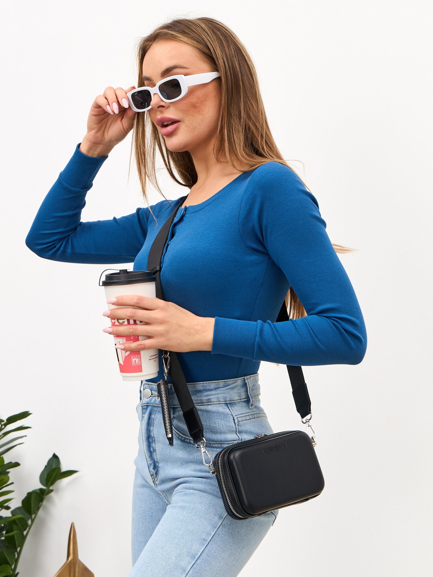 Сумка женская через плечо кросс-боди из экокожи RESIN черная интересное: