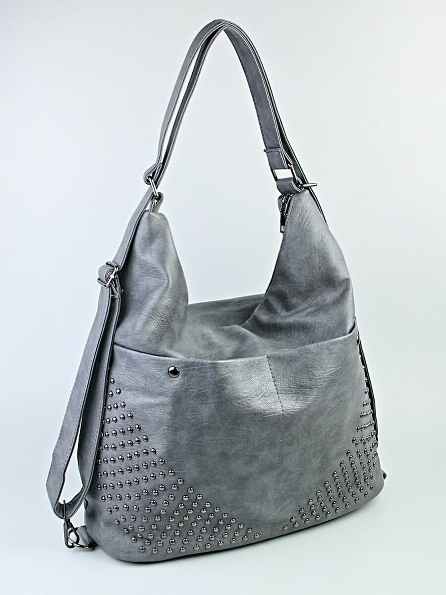 Купить Сумка женская "Хобо" из эко-кожи, модель "6615" Серая