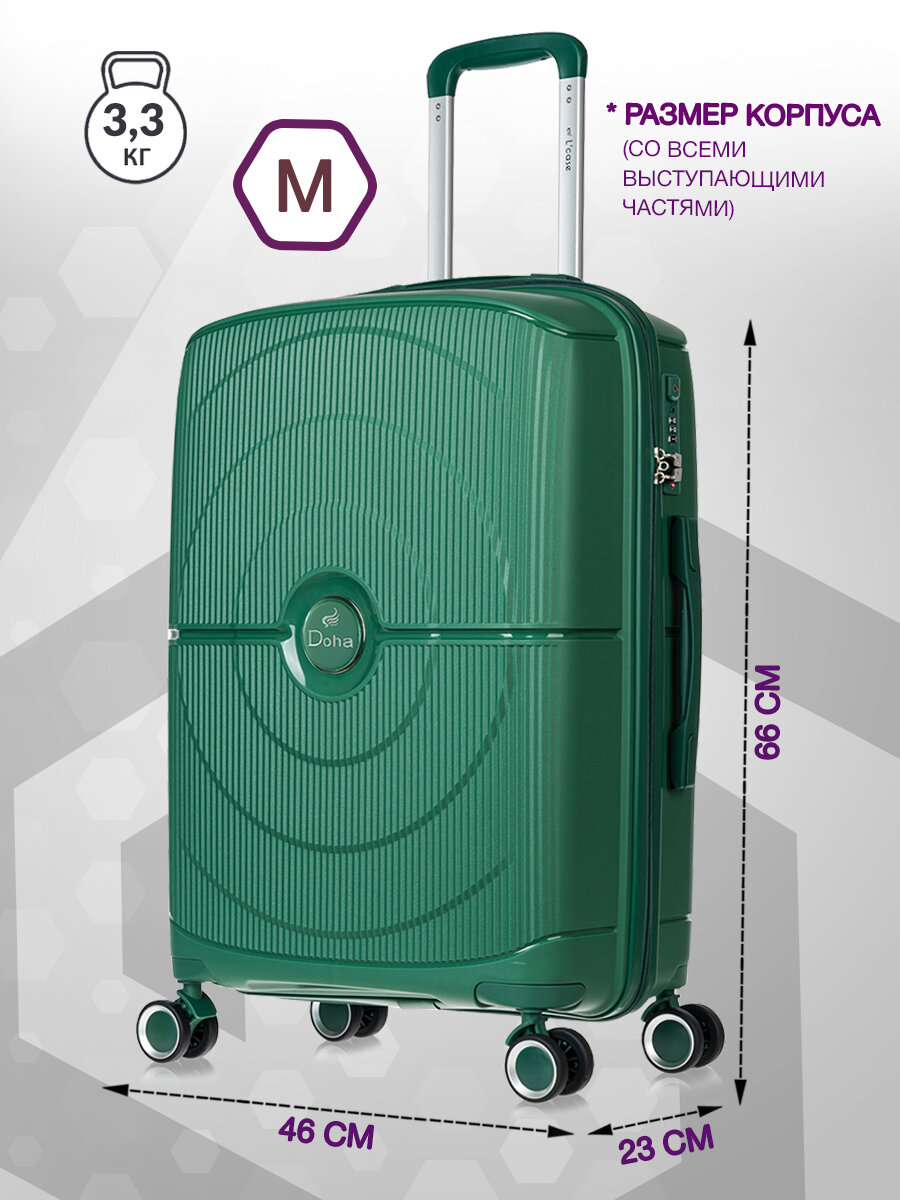 Чемодан на колесах средний М полипропилен пластиковый Doha, дорожный, ударопрочный, кодовый замок, 61см, 45л