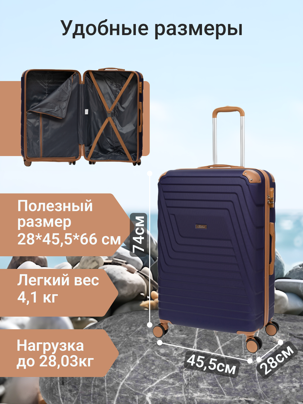 СохранитьЧемодан на колесах BELLETTI 1030-74см (синий/коричневый) L, 84 л интересное: