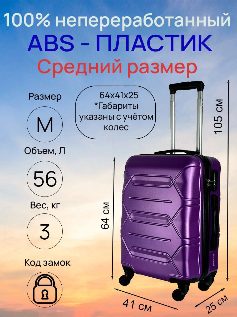 Купить Чемодан, средний размер (М) 56 л, 64x41x25, съемные колеса, кодовый замок, цвет - фиолетовый