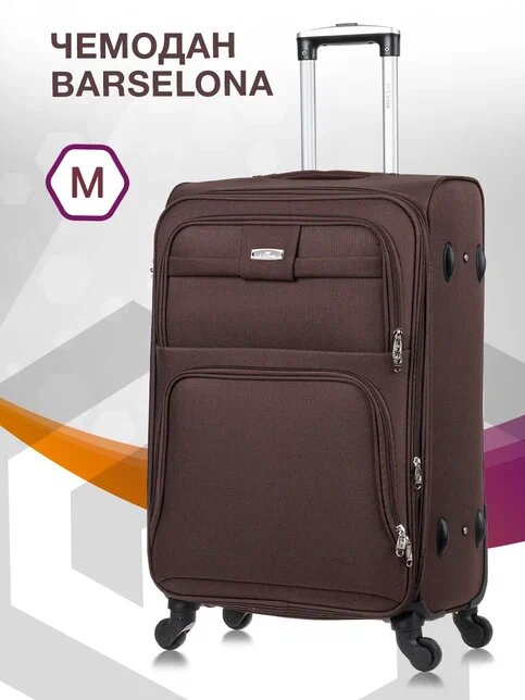Чемодан на колесах L case BARCELONA, Кофейный. Средний размер М, тканевый, 70 см, 92 л. Дорожный чемодан на колесиках для путешествий и поездок.