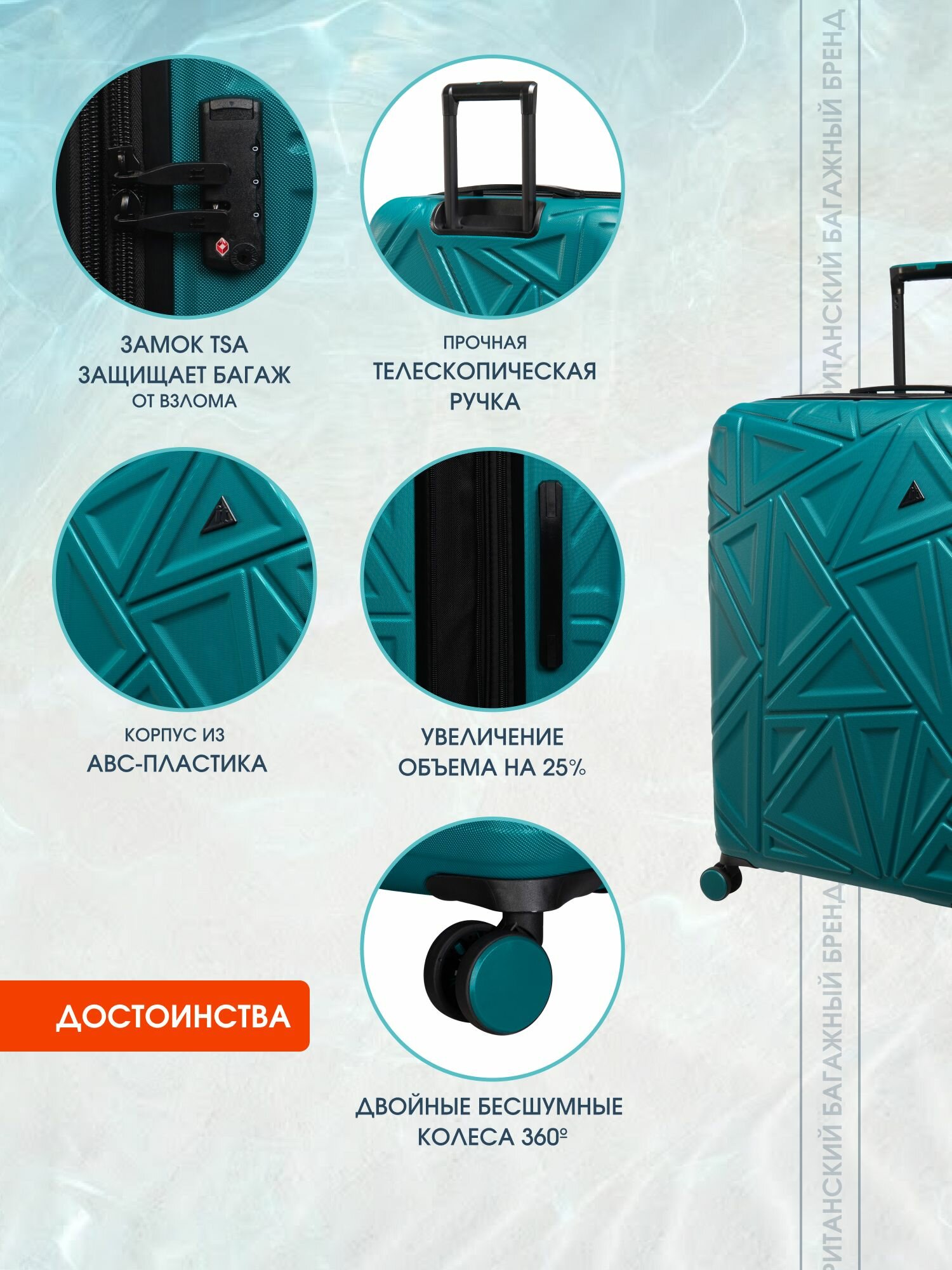 Чемодан на колесах XL от it luggage , модель Trigon , большой чемодан , цвет голубой интересное: