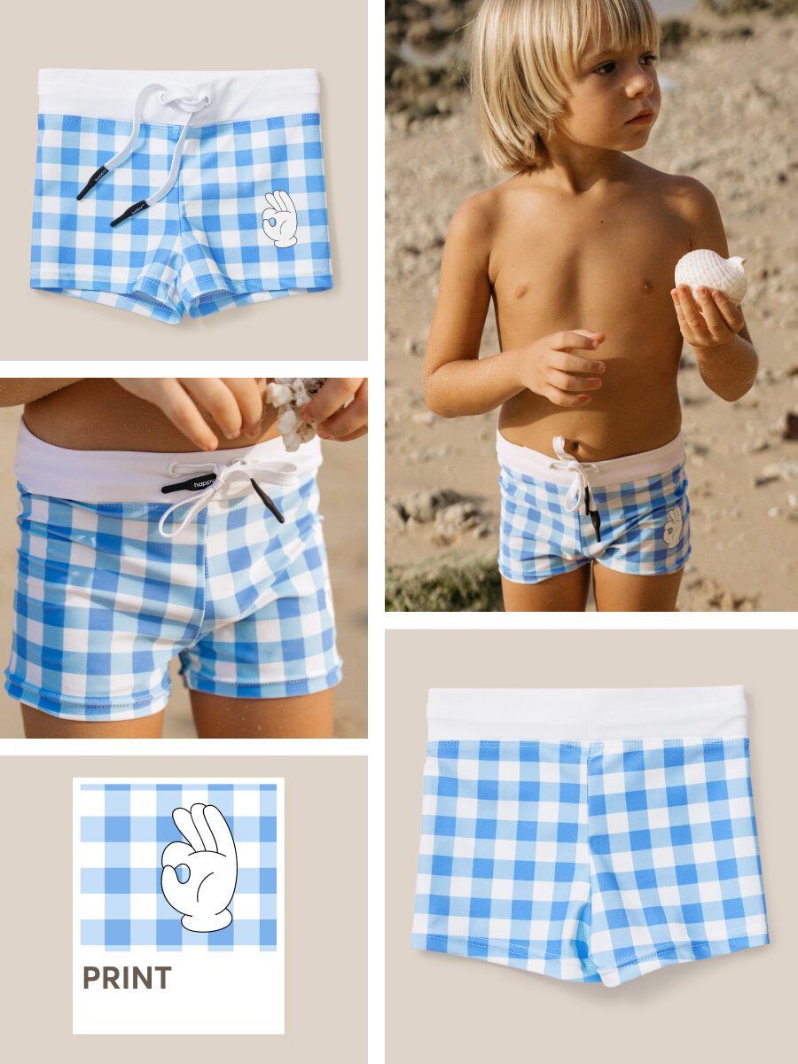 50655, Плавки детские Happy Baby плавки для мальчика, шорты для плавания солнцезащитные UPF50+, голубые в клетку, размер 116-122