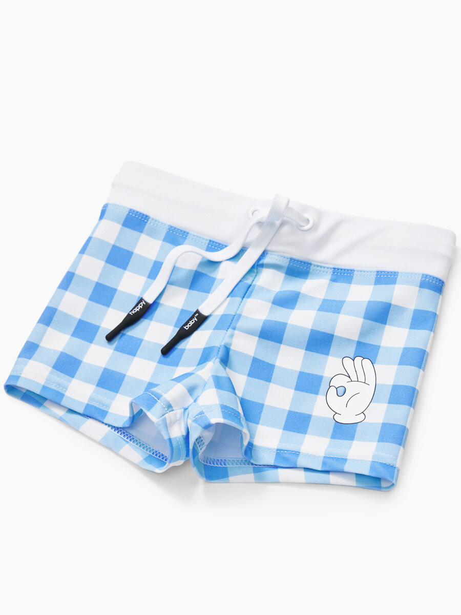 50655, Плавки детские Happy Baby плавки для мальчика, шорты для плавания солнцезащитные UPF50+, голубые в клетку, размер 80-86