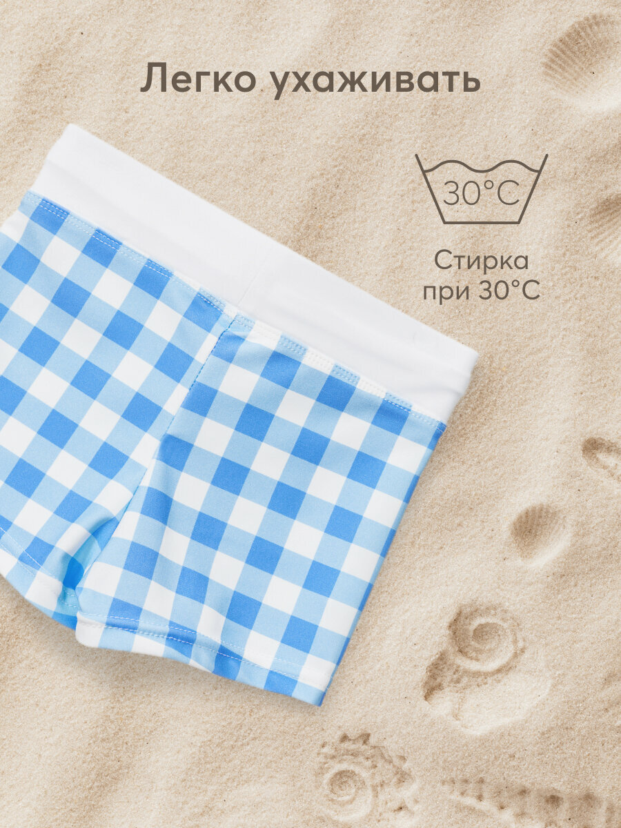 Сохранить50655, Плавки детские Happy Baby плавки для мальчика, шорты для плавания солнцезащитные UPF50+, голубые в клетку, размер 116-122 интересное: