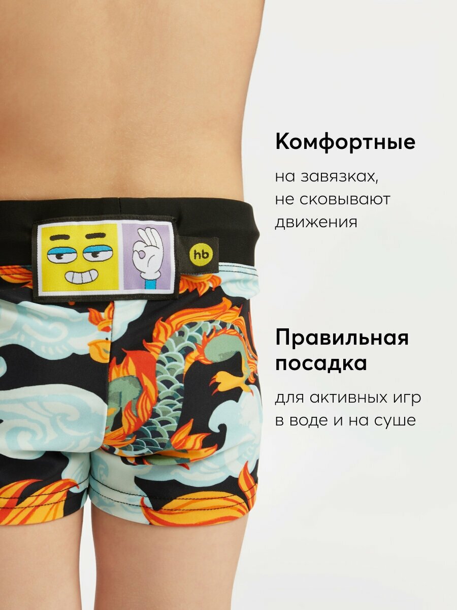 Сохранить50655, Плавки детские UPF50+ Happy Baby для мальчиков, шорты для купания солнцезащитные, черные с драконами, размер 116-122 интересное: