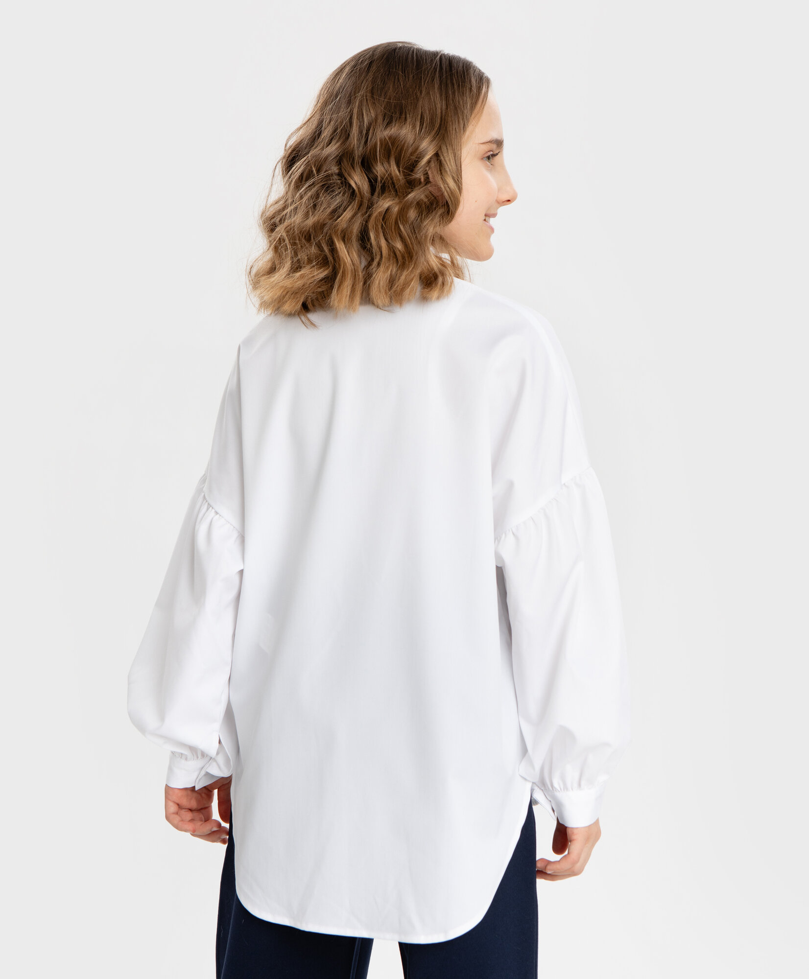 Блузка со спущенным плечом и объемными рукавами белая Button Blue, р. 122, мод. 224BBGS22330200