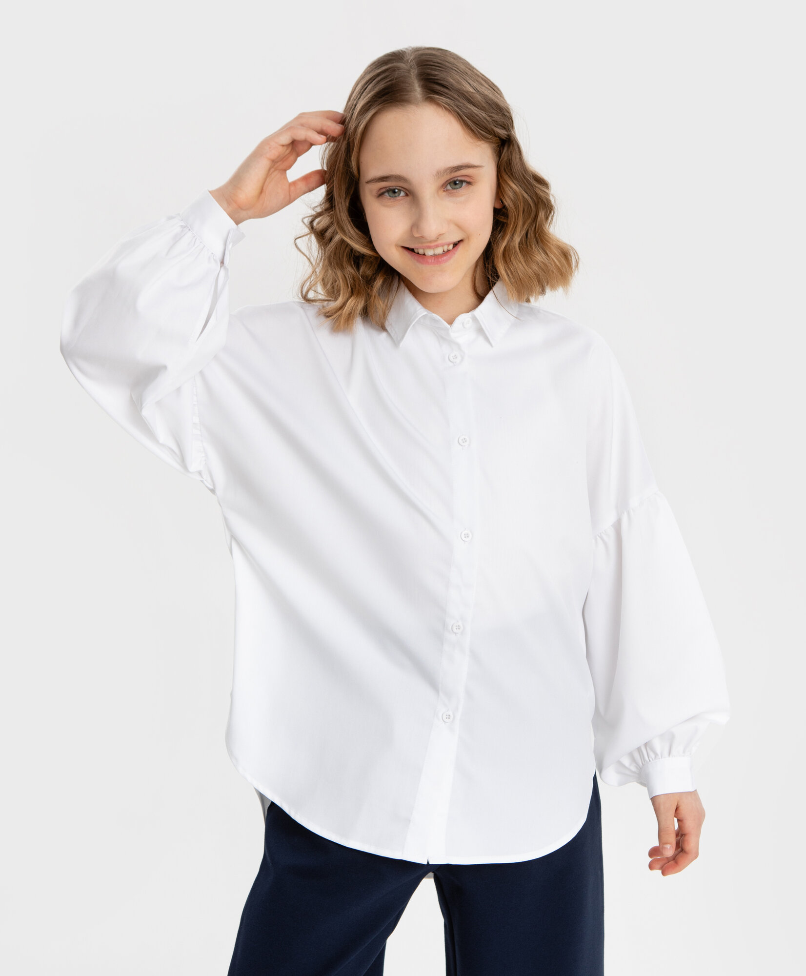 Блузка со спущенным плечом и объемными рукавами белая Button Blue, р. 152, мод. 224BBGS22330200