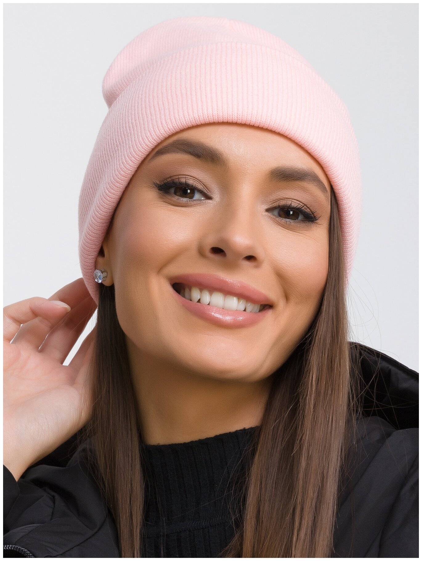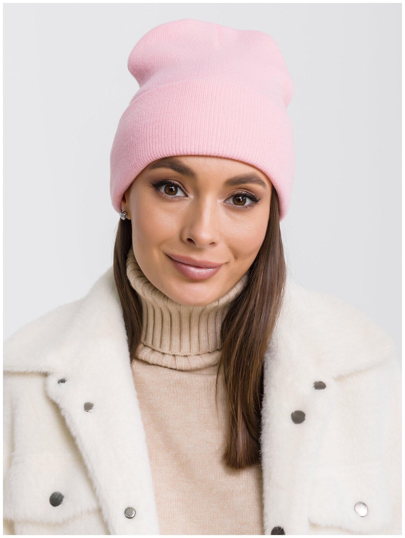 Шапка женская бини осень зима повседневная спортивная с отворотом Averkator светло розовая интересное: