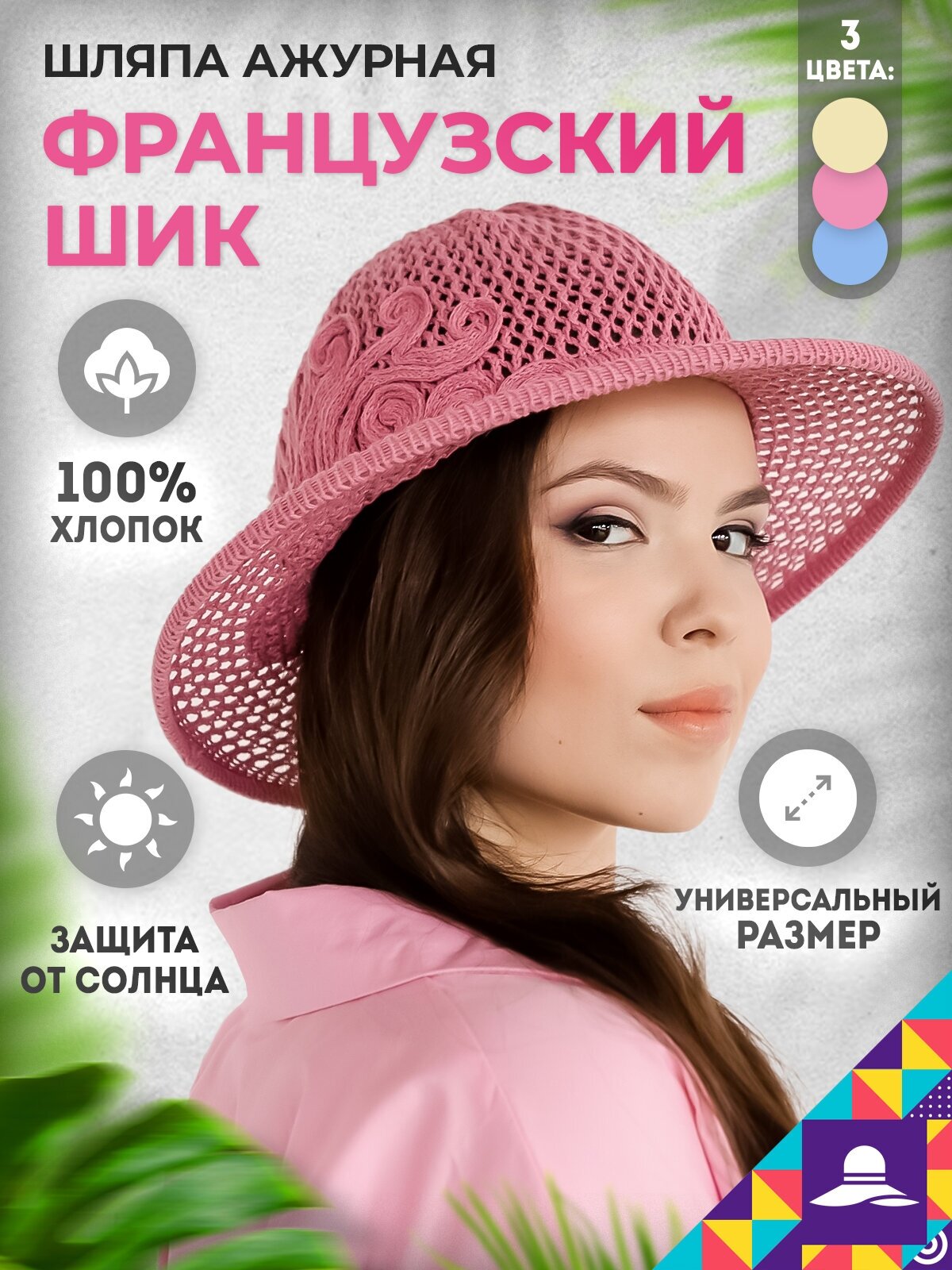 Шляпка Мой Мир "Французский шик" / Женская ажурная шляпка / Летний головной убор, цвет розовый, размер OneSize интересное: